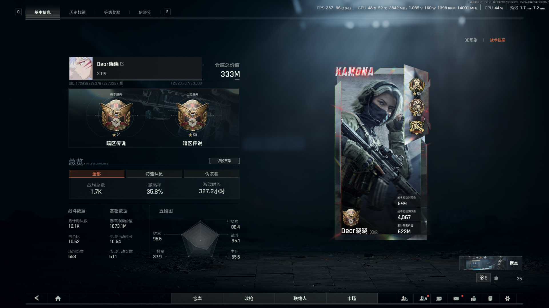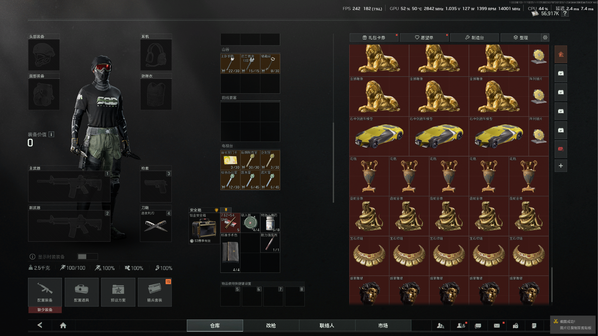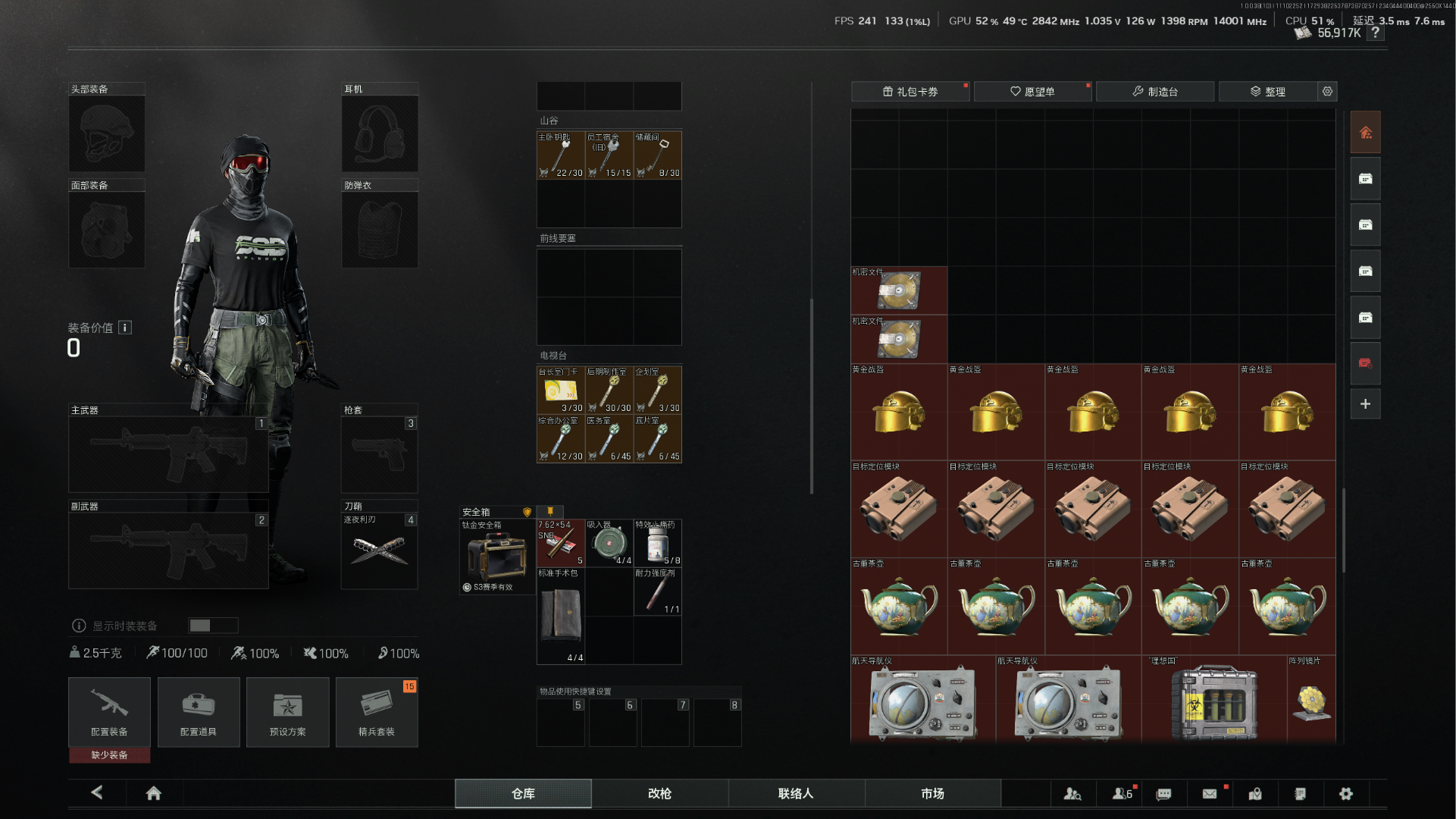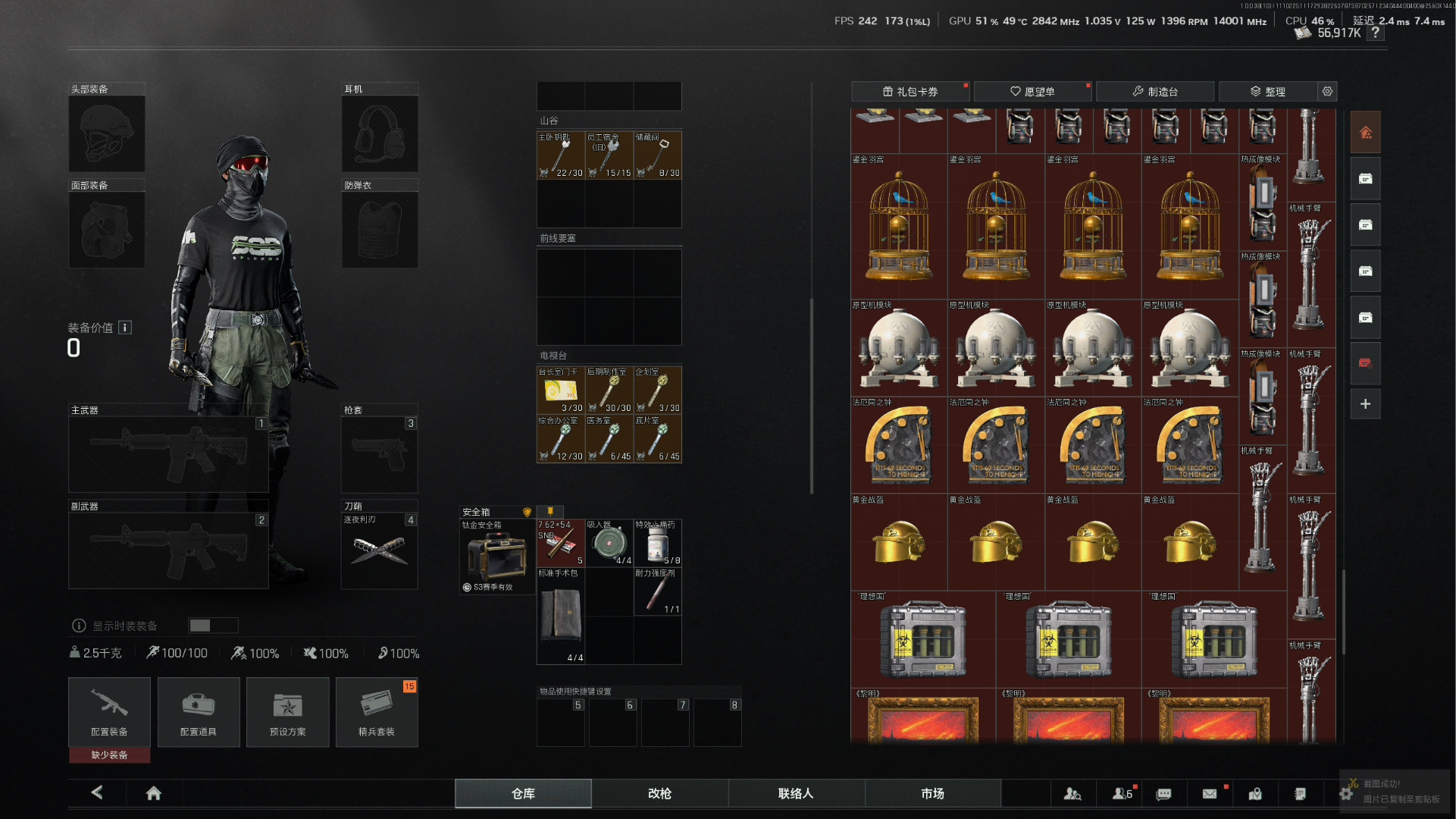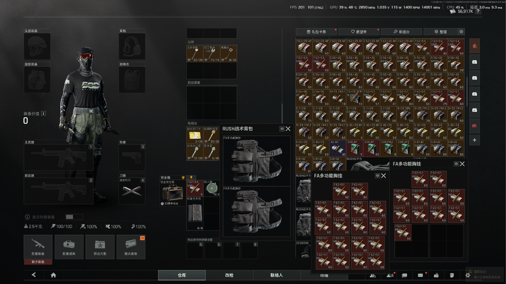 5600k纯科恩比 3x3保险箱 2k发61 有t7 所有地图全钥匙 账号爆率极高 战斗分适中