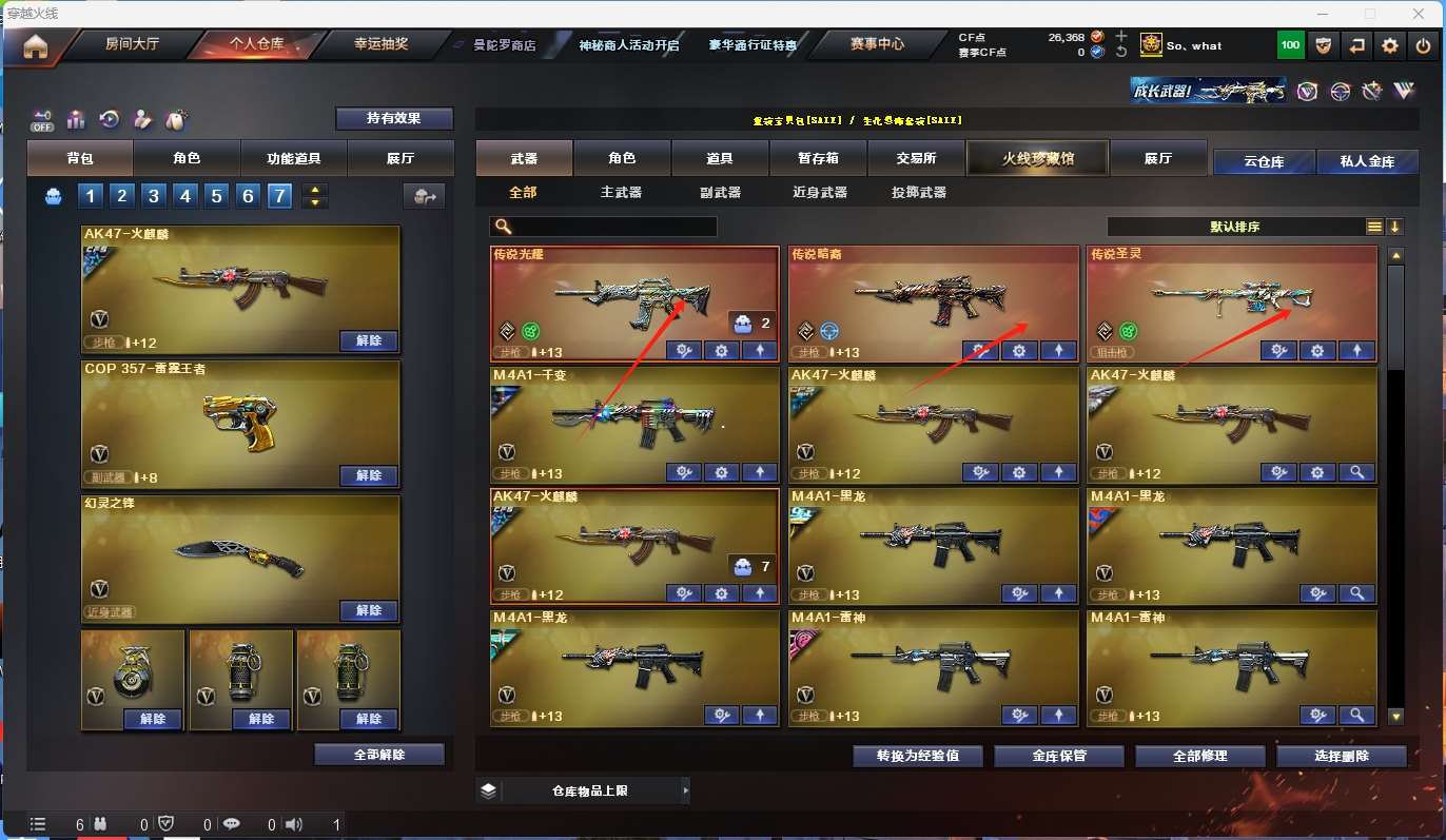 四防传说女帝】 【m200-幻神+音效卡+幻神-冠军之幻+幻神-宠儿+幻神-青鹤+幻神-黄忠】 【98k星神】 【竞技荣光套】 【王者幻神】 【传说圣灵】 【传说光耀】 【传说暗裔】 【g36c幻影】 【王者白虎】 【scar白虎】 【qbz金色蔷薇+冠军之薇】 【武圣套】 【雷暴套】 【夜魔套】 【幻灵套】 【火麒麟】 【黑龙+音效卡+黑龙-冠军之武】 【雷神+音效卡+雷神-lgd18冠军+雷神-宠儿+雷神-冠军之魄+雷神-荣耀之魄】 【黑骑士+音效卡+白马银呛+黑骑士-马超+黑骑士-冠军之势】 【毁灭+音效卡+魔灵+毁灭-冠军之怒+毁灭-荣耀之怒】 【极光】 【裁决】 【王者之心 王者之武 王者之魄 王者之势 王者之戮 王者冰魄 王者之烈 王者雷怒】 【千变 无影 死神 黑武士 天启 超新星 黑鲨 青龙 hk417-朱雀 烈火】 【生化 5盘龙 5炼狱 6烈龙 迷你小钢 蝴蝶】 【27手呛 修罗*5 天神*4 usp雷暴*2 cop堕天神*2 cop幻灵*2 cop雷霆王者*2 冠军之特】 【24近战 屠龙*2 龙啸*3 擎天*3 麒麟刺*2 幻灵之锋 王者之锋 王者之啸 】 【手雷 雷暴雷*7 夜魔雷*7 电竞装甲*7 幻灵雷*7 竞技荣光 雷霆王者】 【四防 凌霄 影豹 王者春 王者葵貂蝉 王者迷迭香 王者瞳闭月羞花 王者炽天使 王者玲珑小乔 王者凌霄 王者潘多拉】 【幻神音效卡