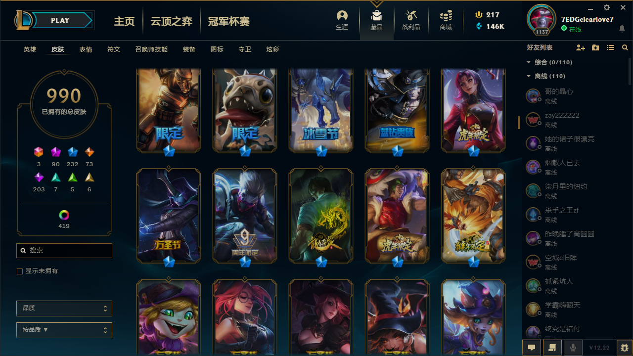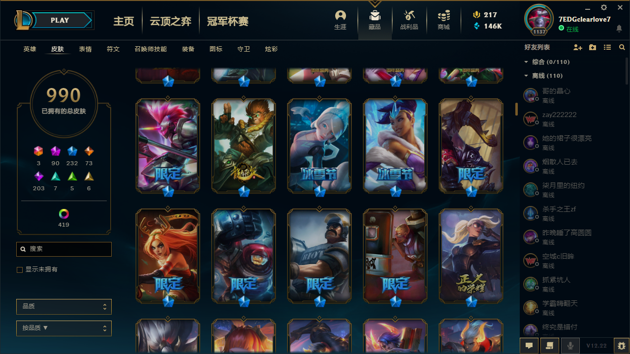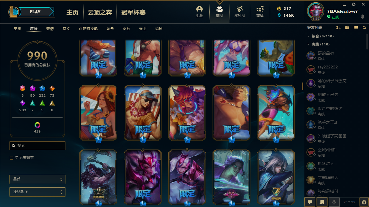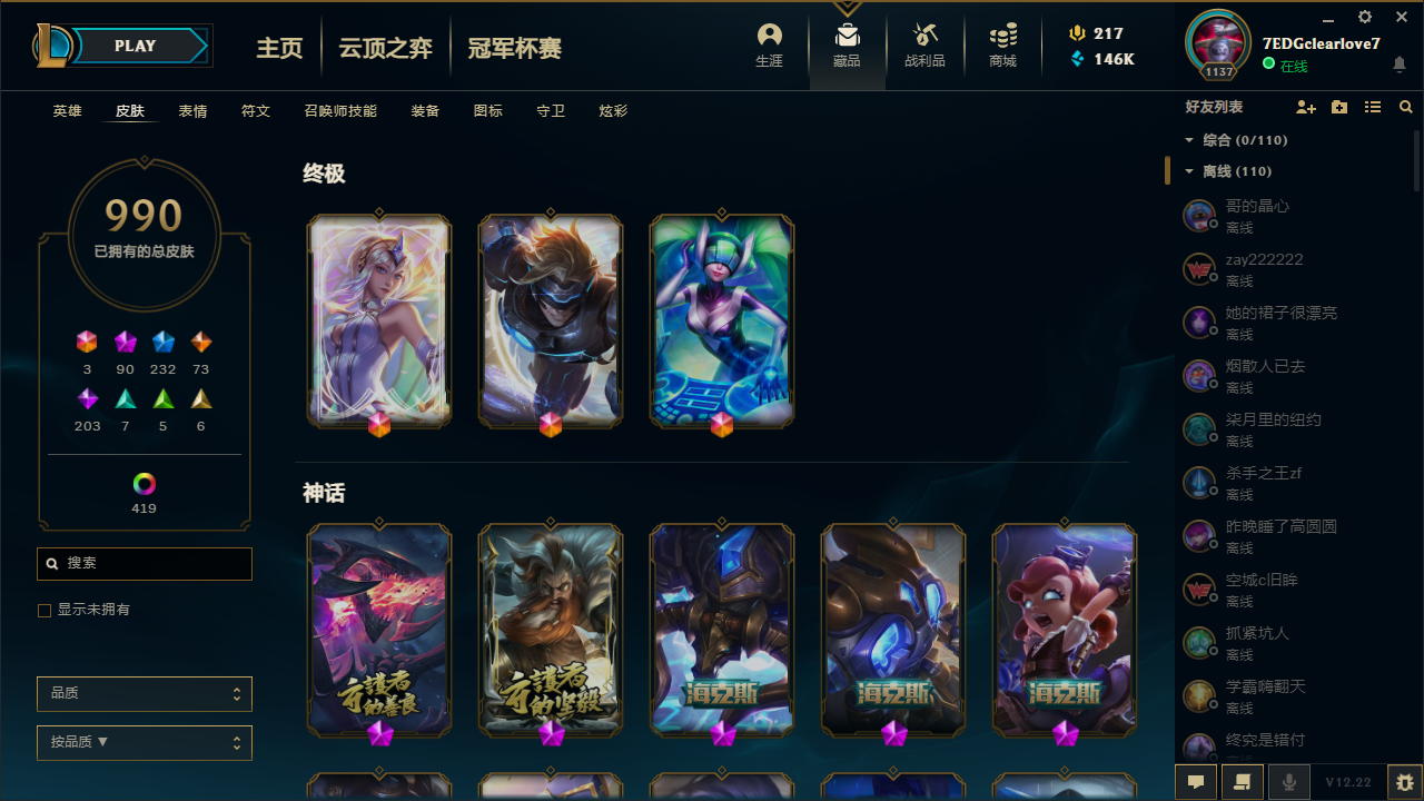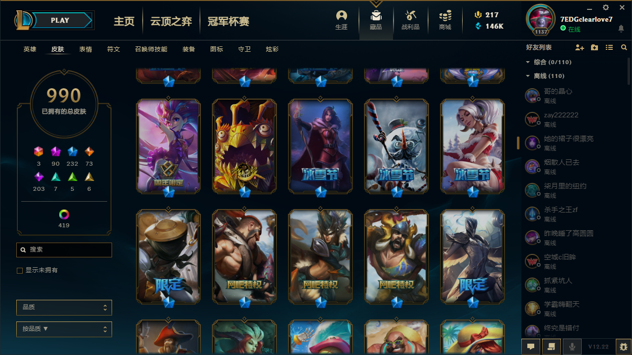 1000P/63至臻龙猴龙虾龙琴战队皮肤卧虎藏龙冰雪节限定泳池派对冠军EDG皮肤