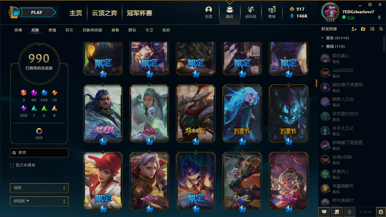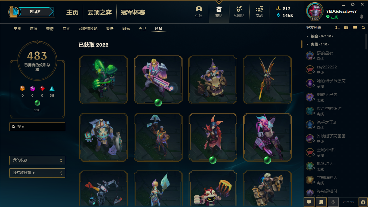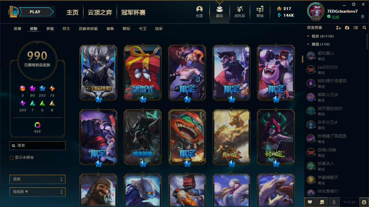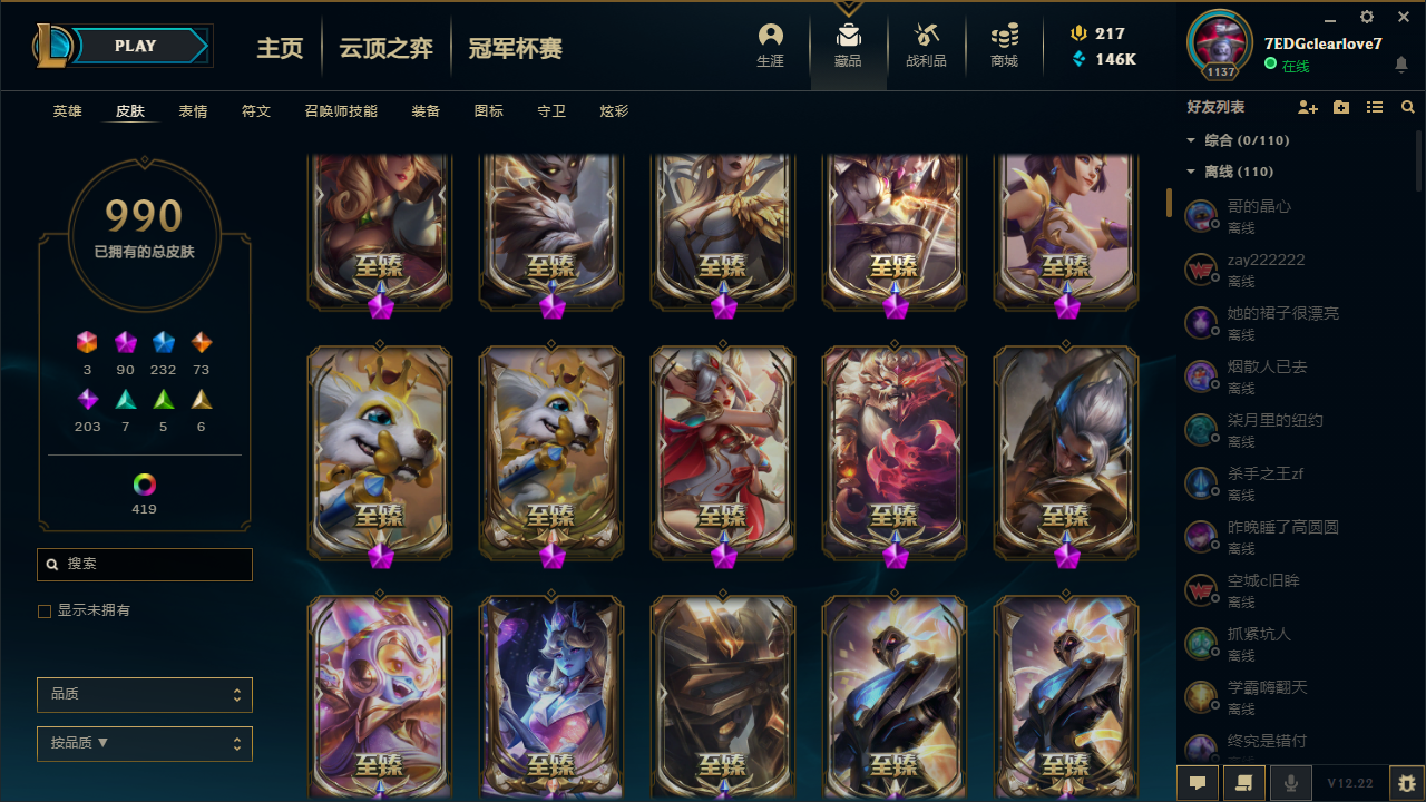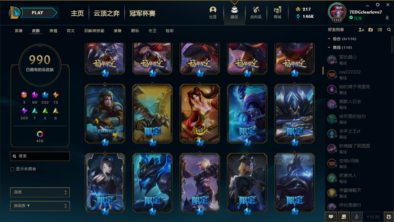 1000P/63至臻龙猴龙虾龙琴战队皮肤卧虎藏龙冰雪节限定泳池派对冠军EDG皮肤