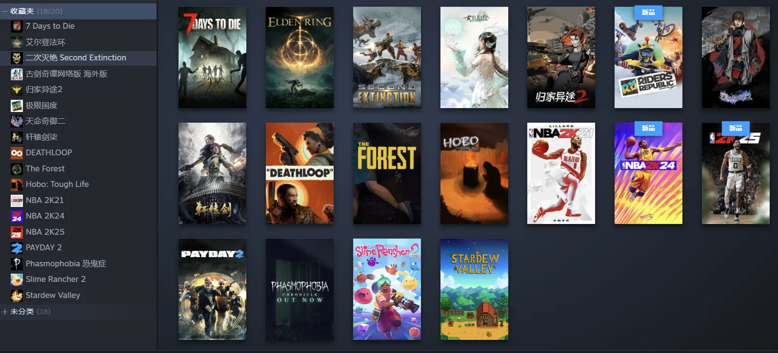 NBA2K25、NBA2k24、NBA2K21、艾尔登法环、史莱姆牧场2死亡循环、恐鬼症、乞丐模拟器