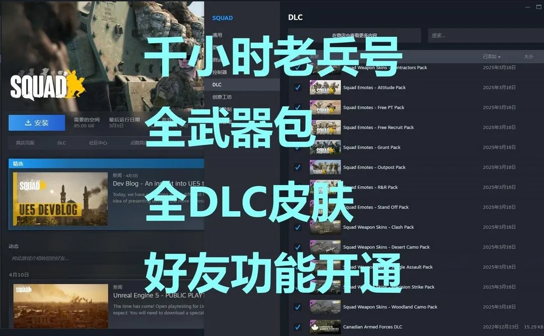 战术小队-Squad⭐商城清空⭐全皮肤DLC⭐千小时老兵号⭐全武器包⭐火力展示⭐好友功能已开