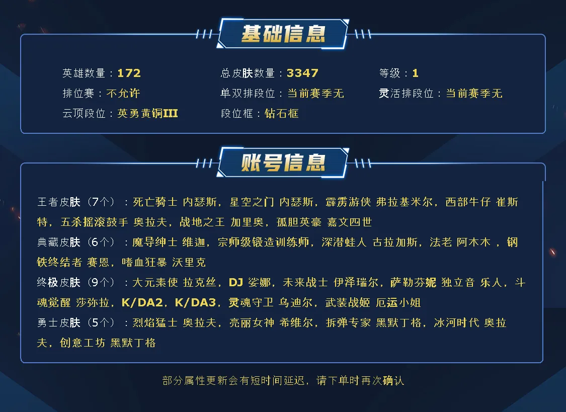 黑色玫瑰3000皮/️全英雄可下棋可排位/签名阿狸️名人堂卡莎/2圣堂/9终极️/140神话至臻/340限定