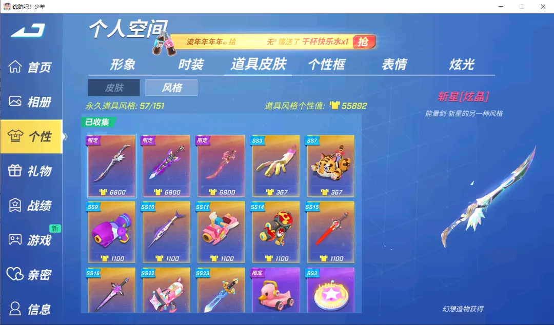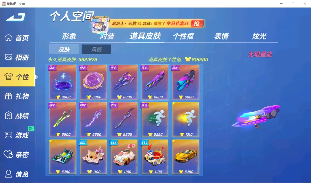 4399端游无垠星能♉165万个性斩星风♋幽冥风格⛎13星耀♑8星耀武器♋泡沫之夏禁言