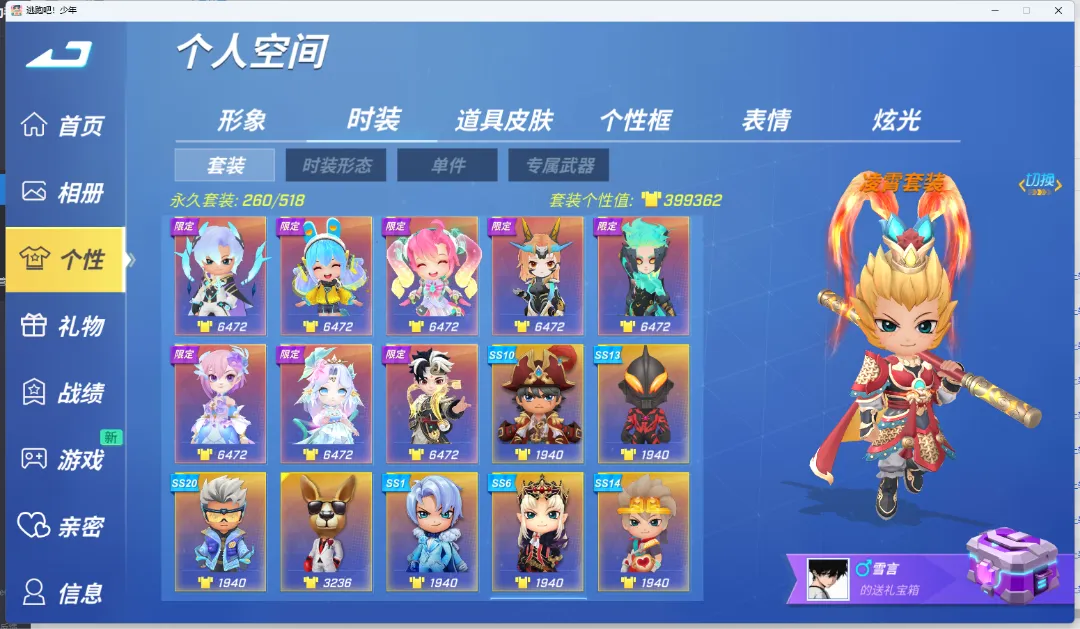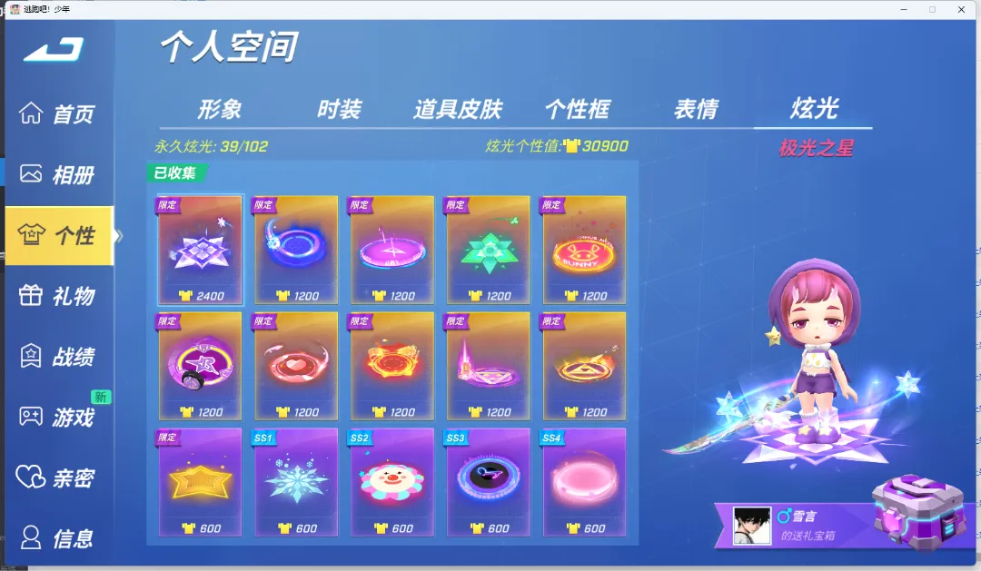 4399斩星风格♉214万个性♋24星耀凌霄套装⛎11星耀武器带4风格♑8星粉时装♋禁言