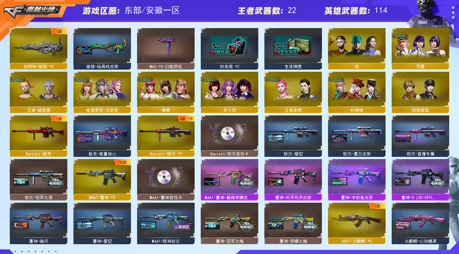【传说影煞】【传说破晓】【幻神+幻神宠儿+幻神冠军之幻+幻神青鹤+幻神黄忠+幻神音效卡+星神+星神-ag-cfpls21冠军】【usp雷暴+冠军之特+荣耀世冠柯尔特+科尔特】【冠军之刃】【竞技荣光套】【m200竞技荣光+玄武+qbz金色蔷薇+幻影+金蚀+裁决+毁灭+白虎+雷神+黑骑士+火麒麟+无影神兵利器】【王者星霆+王者霜心+白虎之魄】【四防电竞教官云悠悠+四防晴雅+四防王者迷迭香+王者涂鸦】【毁灭呛娘格雷姐妹+黑骑士伏羲+雷神巅峰荣耀+黑龙冠军之武+白虎ag冠军+qbz巅峰荣耀+雷神-rlgd-cfpls18冠军+qbz冠军之薇+黑骑士冠军之势+m4a1战神赵云+毁灭冠军之怒+雷神荣耀之魄+火麒麟cf+火麒麟冠军之心+雷神冠军之魄+黑骑士-ag-s4冠军典藏】【qbz天罚音效卡+黑龙音效卡+雷神音效卡+黑骑士音效卡+毁灭音效卡+qbz金色蔷薇音效卡】【裁决-雪莉杨+cop白鲨+kac锯式机呛黑桃战神+awm灵狐15周年嘉年华+m37葵+cop旗袍+冰火魔兽+夺魂+迷你波特博士+迷你深渊冰龙+迷你牛牛+迷你深渊冰龙王绿豆+魔能飞环曼陀罗】【闪光护目镜+炫彩背包+超级背包】【a背包套装-扩展卷+b背包套装-扩展卷+手雷包+c4工具钳】