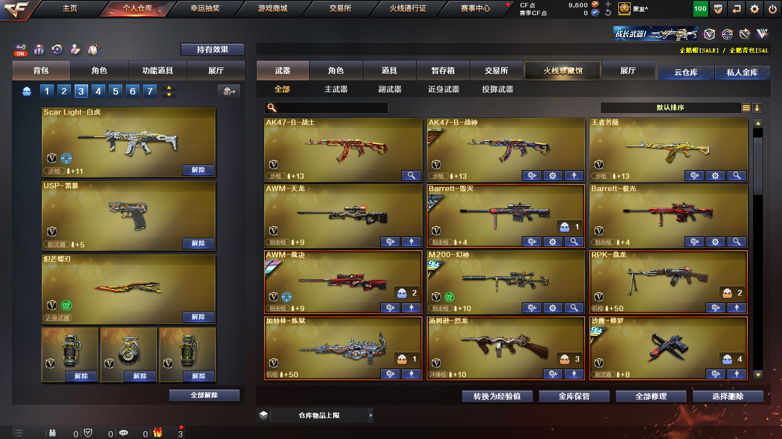 【幻神+幻神冠军之幻】【usp雷暴】【炽芒蝶刃】【雷暴套】【雷神+火麒麟+黑龙+雷暴+qbz金色蔷薇+朱雀+无影神兵利器+白虎+黑鲨+赤狱骑士】【四防王者潘多拉】【雷神巅峰荣耀+裁决流光秘银+黑骑士冠军之势+雷神荣耀之魄+雷神冠军之魄+黑骑士ag冠军】【colt1911大黄蜂】【金色蔷薇空】【cop白鲨+kac锯式机呛黑桃战神+awm灵狐15周年嘉年华+cop旗袍】【闪光护目镜+炫彩背包超级背包】【a背包套装-扩展卷】【c4工具钳手雷包】