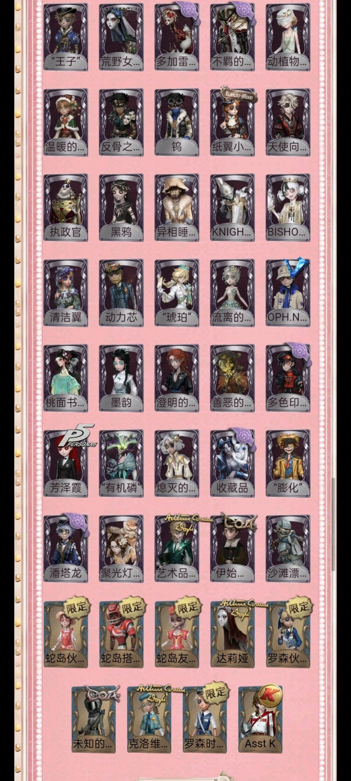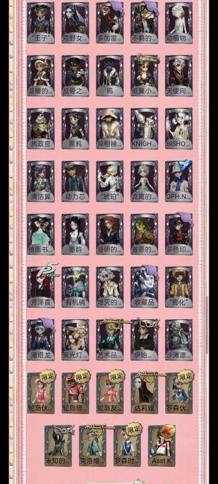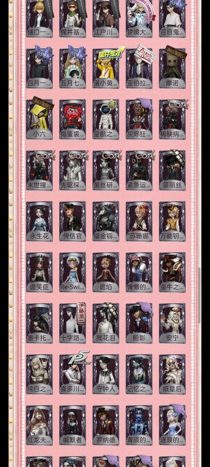 租号必看,开挂必报警 恶意毁号必报警 报警报警报警报警报警报警报警报警报警报警报警报警报警报警!!!! 1-挂机封号必报警处理 挂机封号损失 查ip 报警处理 禁止使用外挂,此帐号非账号问题不可撤单! 2-官方账号密码直接登陆,禁止游戏内刷喇叭说卖号骗人,抓一次直接报警, 禁止开挂,本账号经过网络财产备案,一直发现直接报警处理不会登陆的租客请下载 taptap 找第五人格下载游戏 3-账号财产价值很高,本店24小时在线,恶意投诉秒顶改密,直接拉黑,永久不让租 4-使用外挂,脚本等一切破坏游戏平衡,在平台提取实名ip(都是vzfb实名消费)直接立案追责,三倍赔偿账号价值 5-本店文明租号,你好我好大家都好。游戏本身就是消遣娱乐的地方,切勿消极对待,切勿以身试法,文明租号,快乐你我他。祝每个租客都有好心情,维护好环境。 6-游戏里任何东西都不要想着去破坏,试图解除二级密码的,一经发现直接拉黑。 7-游戏里涉及到任何钱财账号交易,一律不要相信,天上不会掉馅饼,如有财产损失,与本账号无关,文明租号。犹格索托斯之使 希世时装 限定 限定 限定 限定 限定 珍奇柜 KING-h1 “温室” 星之王 溯光 限定 限定 限定 C限定 限定 司药 灰云 招风旗 变王 片刻闲暇 艾札克佛斯特 中原中也 川上富江 雨宫莲 JOKER B.Duck 华生小姐” 灾厄之主 乌骨 谪仙 瑶彩 夜来香 忘川渡人 暗金蛋糕 竹华 5 今夜不再 盖提亚之遗 盛夏飞盘 祈雨珠 奇珍时装 限定 [限定 P 麒麟商人 “加特 奥村春 佐仓双叶 高卷杏 非 坂本龙司 SKULL 九月 小玉 Rice 桶口一叶 娓井基次郎 江户川乱步 梦境大耳狗 百目鬼静 物 蛋仔对 四月一日君寻 五月七日小羽 蛋小黄的好朋友 亚伯拉罕葛雷 摩诺 小六 捣蛋裘克 星航之旅 灰烬狂想 稀缺病案 末世搜救 先驱探索 菌丝研究 紧急运输 菲丽丝 永生花 传信官 镏金铜鹿 “苏珊那 万能钥匙 诡笑症 Re-Swim 诡焰 慷懒的兔先生 蛮牛之力 墨卡托投影 十字路口的美少年 残花泪 船影 安宁 纯白之盐 喜多川祜介 守钟人 记忆之骑 纸皇后 红龙夫人 缄默者 罗纳德 青须的公爵 逐浪的玫瑰 “王子” 荒野女巫 多加雷萨 不羁的浪漫 动植物学教授 BDfLe 温暖的平安夜 反骨之缚 钨 纸翼小姐 天使向导 执政官 黑鸦 异相睡眠 KNIGHT-C3 BISHOP-f1 清洁翼 动力芯 "琥珀” 流离的月光 OPHNAIB 桃面书生 墨韵 澄明的理性 善恶的本性 多色印刷 芳泽霞 “有机磷" 熄灭的太阳 收藏品 “膨化” 潘塔龙 聚光灯下 艺术品商人“伊始新篇” 沙滩漂移 |部分独特时装 限定 限定 限定 蛇岛伙伴 蛇岛搭档 蛇岛友人 达莉娅 罗森伙伴 限定' 未知的“来客” 克洛维斯 罗森时光 Asst K 葡萄酒 星云瓶 噬魂 诅咒黑云 见证 茅龙书 灯龙影 宽恕 “非易碎品” 呼唤 萤之羽 "光明" 无尽森林 报时鸟 书中蝶 未送出的花 致命的邀请函 遗忘之花 夏 逆转之战 毁誉之印 转位 对决 玉麒麟 园丁布偶 折柳 灵河 清樽 蒸汽炉 净面 燃烬 星图 乾坤袋 手机 玫瑰手杖(蓝) 拒刃匕首 海岸花环 晴天娃娃 沙漠精灵 星星糖 火火火 未奏的乐章 幸福之地 西洋镜 欢呼 案件模拟 极乐熔毁 月饼礼盒 狐狸玩偶 指挥 结冰的齿轮 焚樱 鹰羽 .... ....... 旧日征帆 遥控器 电掣 登峰 落木 充气海豚 日与月 回旋镖 全冰饮料 白泽玉 微缩星球 笔墨藏锋 漂浮 凝固的声音 生日拉炮 巨人风车 介壳虫 皮鞭 “全熟” 摇头鬼 醒梦铃 秘密 便携燃烧器 幽灵娃娃 福尔摩斯冒险史 酩酊 心海之梦 记忆囚笼 [头像]深渊的.. [动态头像] 夜.. [动态头像] 慈... [头像] 深渊的... [头像] 拉拉队... [头像]守夜人-... [头像]富江 [头像]凉哈皮 [头像]佣兵-珍... [头像]医生-永.. [头像]蜘蛛-墨.. [头像]深渊的.. [头像] 魔术师.... [头像]火灾调.. [头像] 哭泣小... [头像]-流... [头像] "喧器... [头像] 病患=溯光 犹格:索托斯之使[动态头像框] ... 第五人格微博 头... 血玉树 虎牙专属 [动态头像框] "碰触” 芭风特 Jingle 鬼灵枯枝 PERSOS 摩尔加纳 ZQ:2020秋 [大厅]迷雾山庄 |典藏乐曲 [家具]条纹大地毯 [家具]弹奏之座 [家具]飞上枝头 [家具]最后的游戏 [家具]弦乐 [家具]破碎的镜子 [家具]好奇屋 [家具]推理 隔 [家具]畸形椅 [家具]曲水茶台 [家具]宇宙之境 忘川渡人 [家具]古韵书斋 I奇珍乐曲 [家具]四季床 [家具]四折屏风。 [家具]傲雪梅花 [家具]角色礼花(.. [家具]女大公 [家具]黑白棋盘 [家具]火星车 [家具]沙滩躺椅