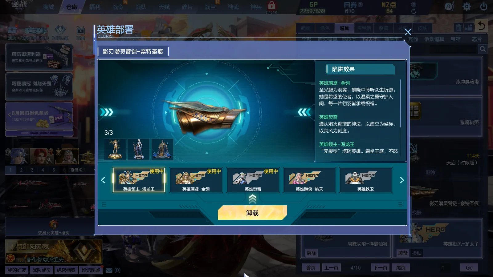 5.20号新增:影刃潜灵臂铠-奈特圣痕、三英雄臂铠、英雄璃鸢、英雄掘金-赛特、英雄大魔导师-艳后、