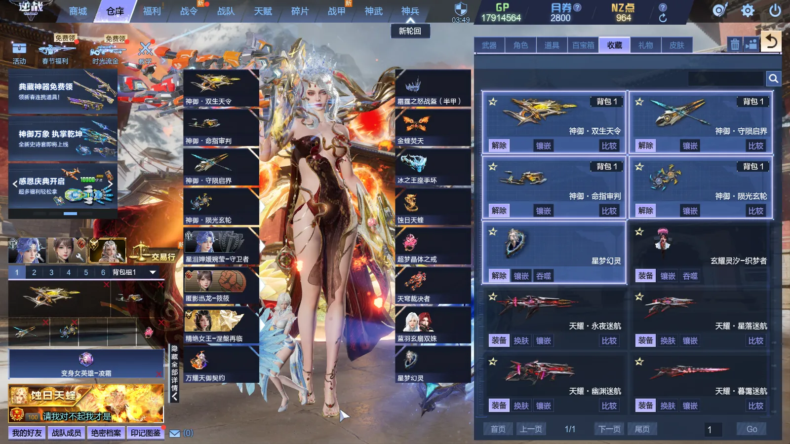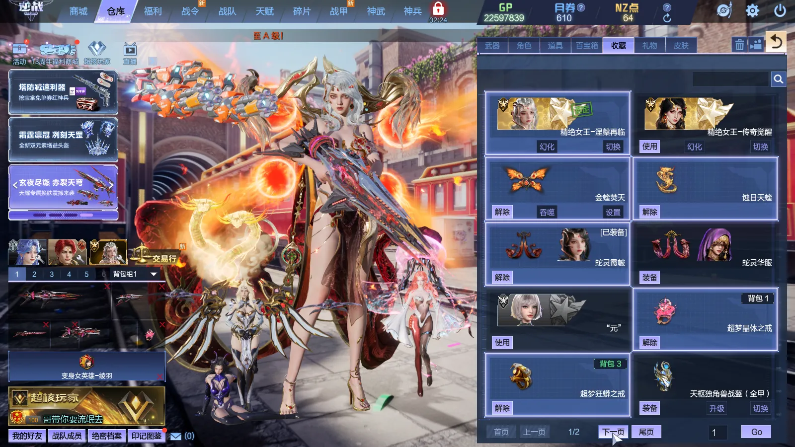 8.12号新增:精绝女王-涅槃再临、载具:蚀日天蝰、蛇灵霞帔、翅膀:金蝰焚天、精绝女王-传奇觉醒、蛇灵华服、精绝女王-涅槃幻化、精绝女王-幻化、至臻夜后、元、