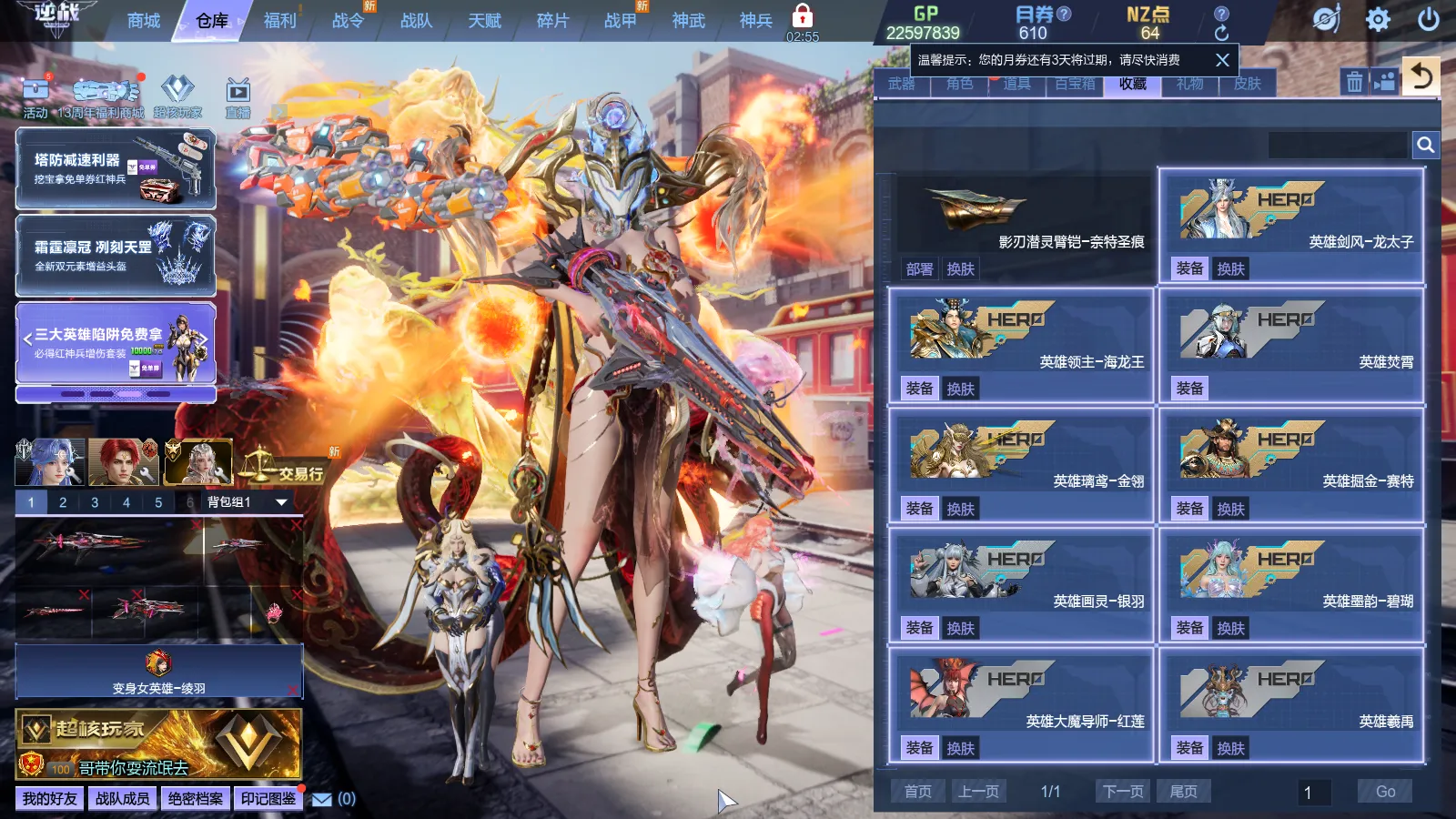 8.1号新增:英雄焚霄、英雄璃鸢-金翎、至臻夜后、名片超核帝冕、