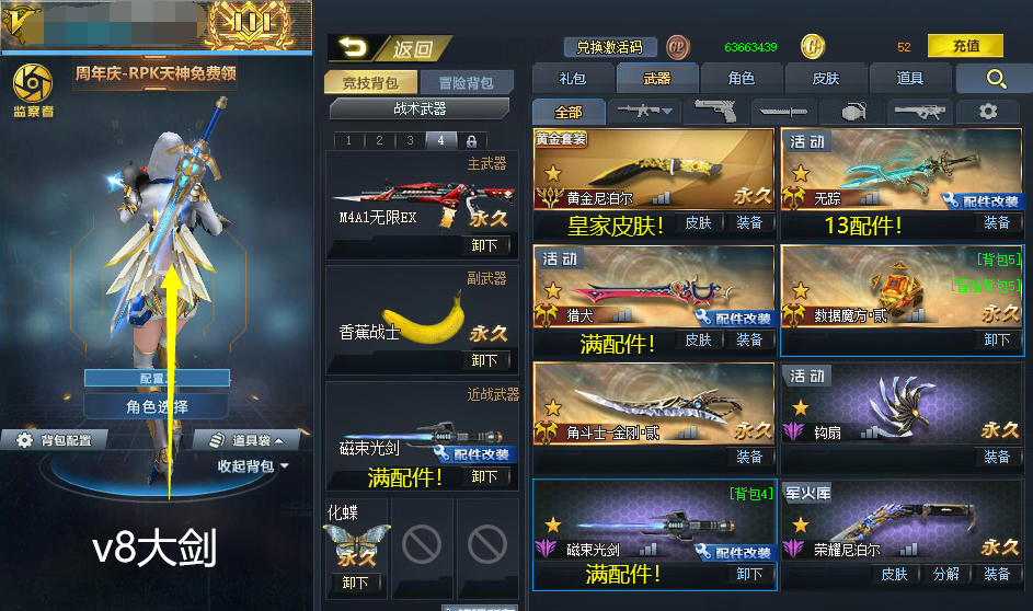A级刀号!三把满配件耀光!双仲裁格挡!满獠牙!满幻锋!满含光承影!满陷阵!满浪淘沙!满极空刃!满虚空