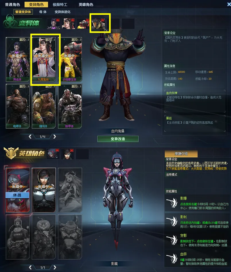 变异体:血肉傀儡,九尾妖狐,子母寄生体,异虫体