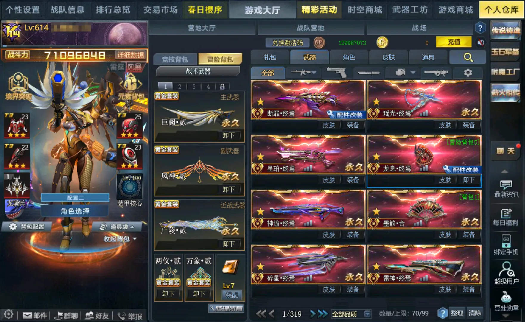 V14,充值28万,冒险最高战力7109万(排行榜最高战力)
