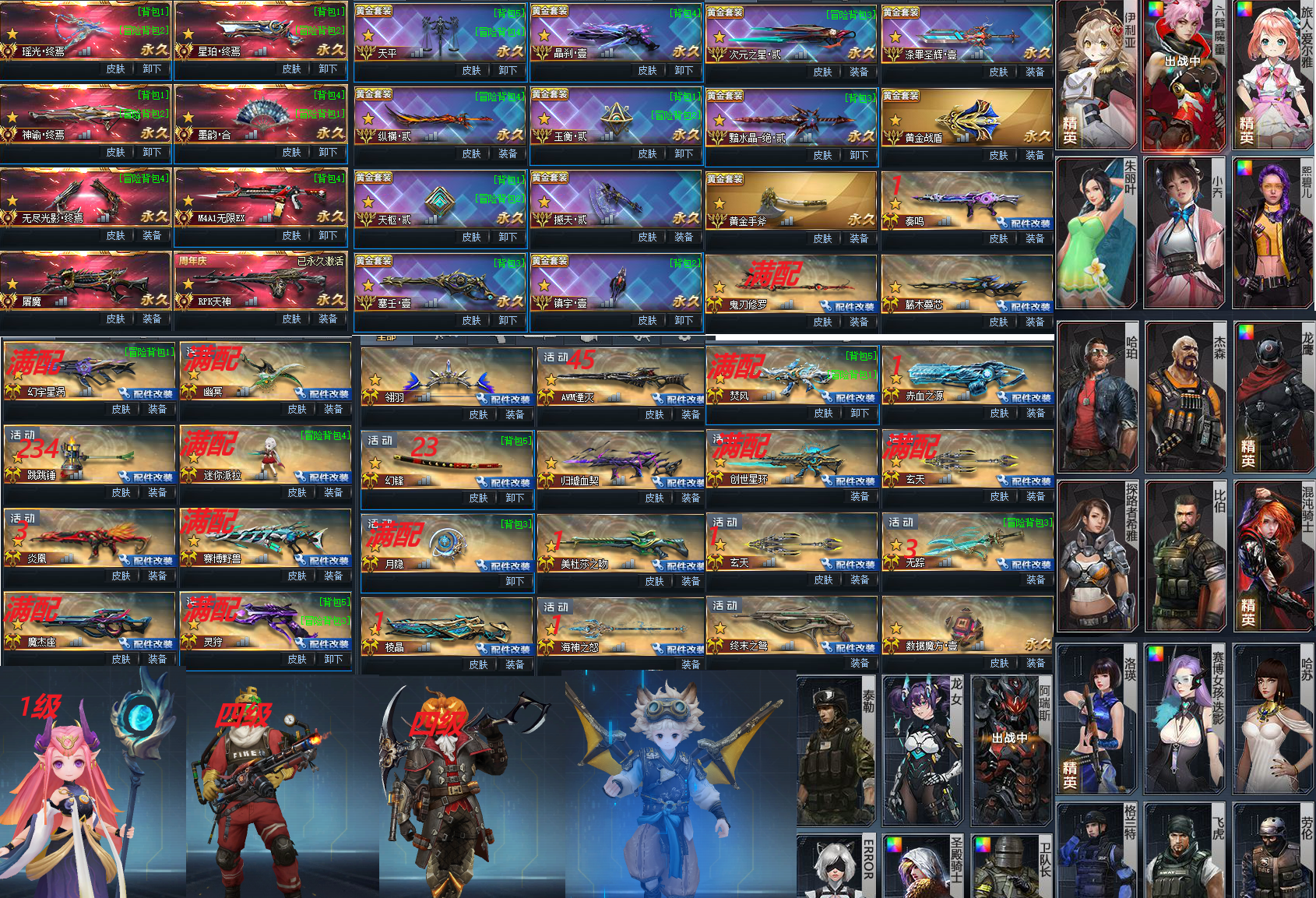 满配鬼刃修罗 幻宇 幽冥 派拉 赛博 月隐 摩羯座 灵狩 玄天 创世 跳跳锤234 炎凰3 秦鸣1 赤血1 无踪3