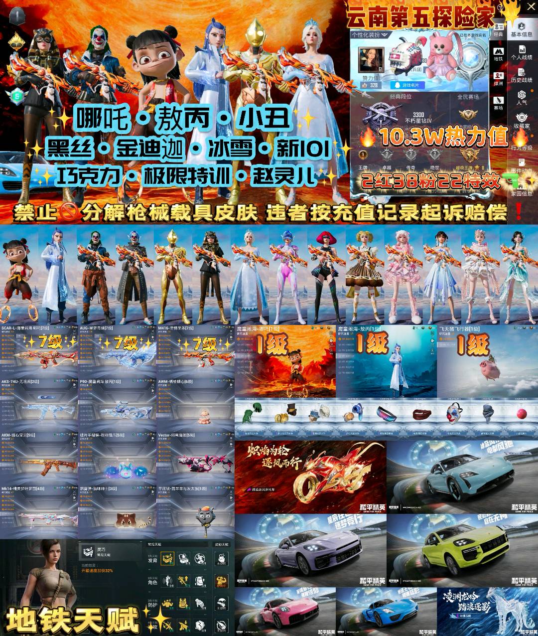 第五探险家7级星梦奇缘Aug7级哪吒SCAR哪吒敖丙雪国巧克力黑丝5辆保时捷车2红38粉22特7载