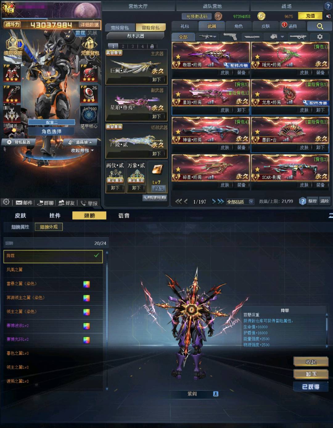 V13紫黛断罪终焉✅金银角大王翡翠瑶光✅4500万战七级穿✅晶刹贰巨阙贰✅满归墟三广陵万象魅影贰✅