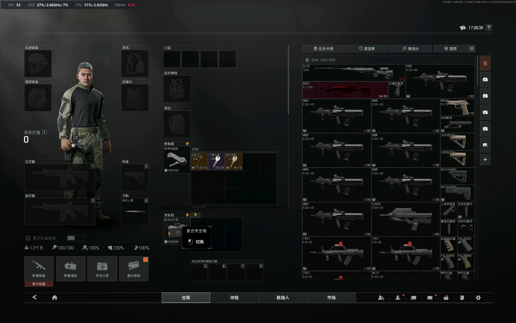 100多m仓库总价值,想玩啥枪玩啥枪,多大金都可卖,适合猛攻玩家以及护航租用。