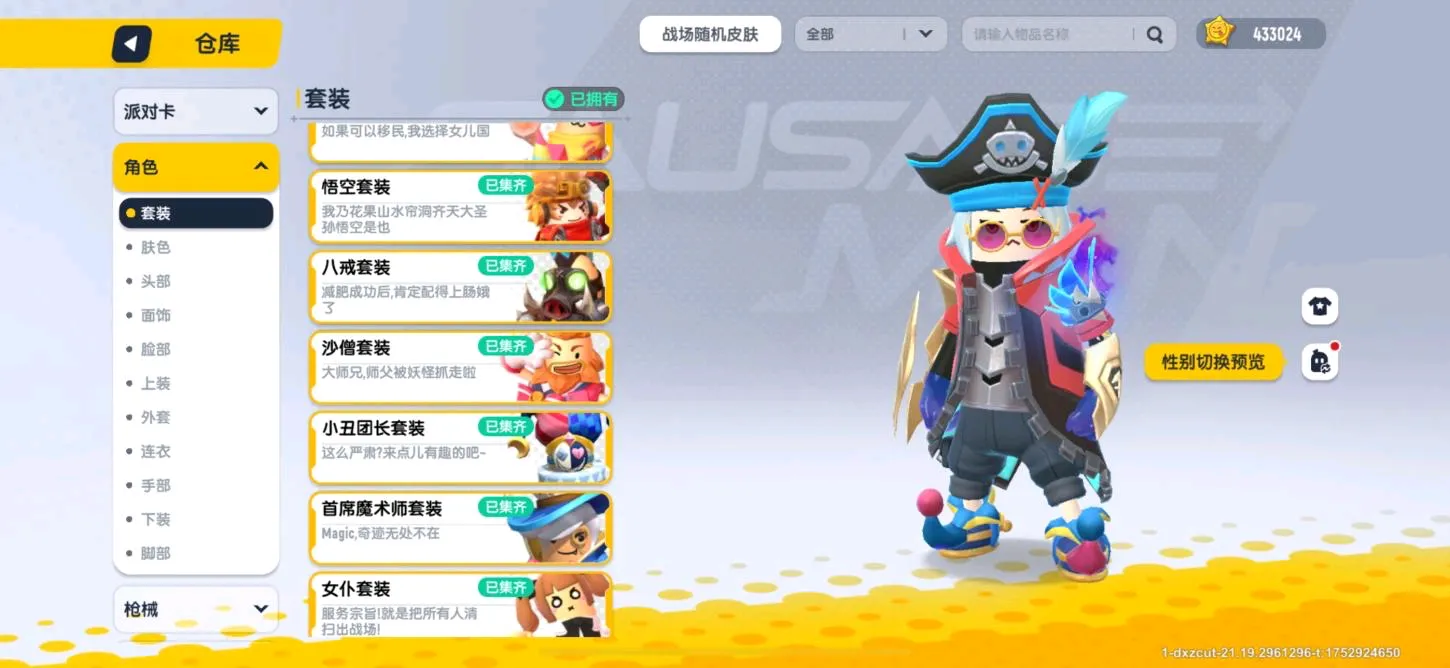 【安卓】 s1-s4机票全有,小丑,船长基德,龙骑士,鱼缸头,还有567套装,有车载皮肤,背包皮肤,枪械皮