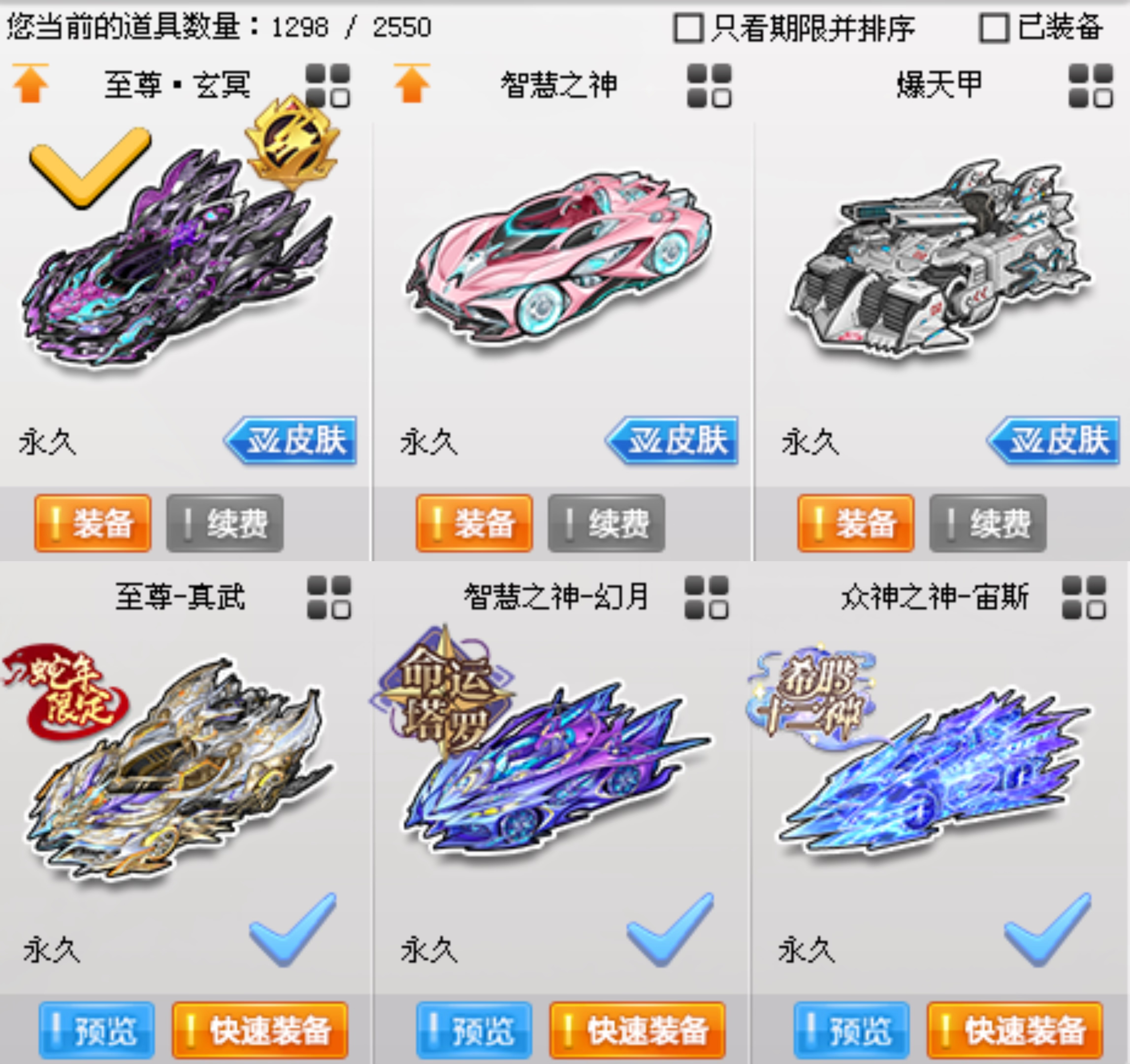 智慧之神幻月+爆天甲+众神宙斯+毁灭者混沌+终极迈凯伦+超核逐魂者