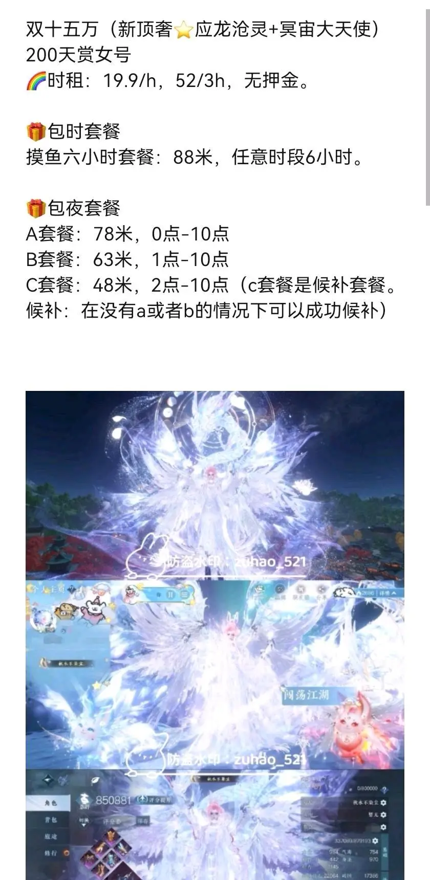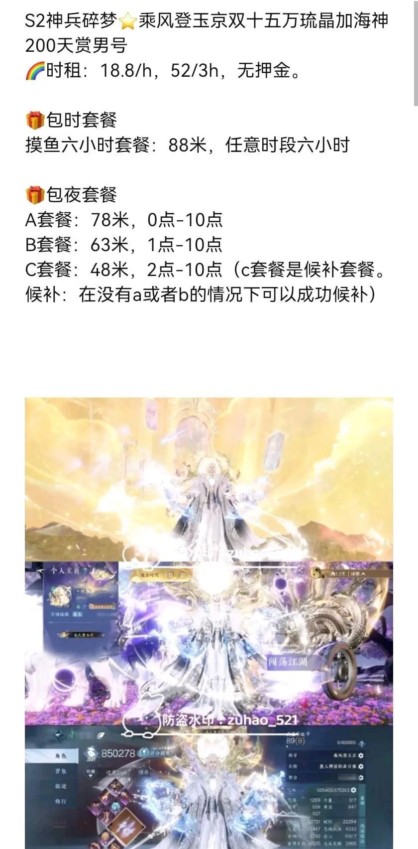 租赁押金:0元(不得使用外挂等第三方软件,违反将会扣除押金)