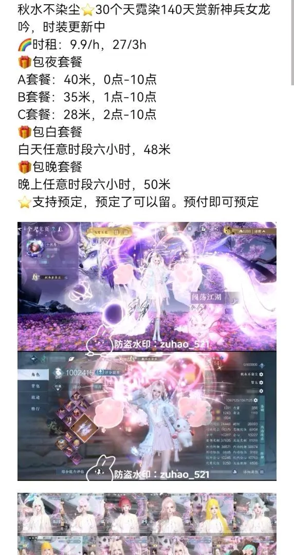 出租逆水寒手游各种轻奢、顶奢账号,欢迎各位老师进小店选购⭐有各种外观号,一到五套顶奢的号都有,男号女号都有,自染多的、天赏多的、祥瑞多的一应俱全。欢迎各位老师选购❗️平台下单,⭐价格美丽,童叟无欺,诚信经营