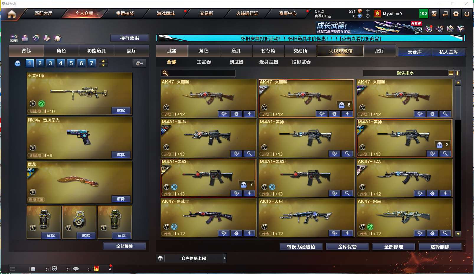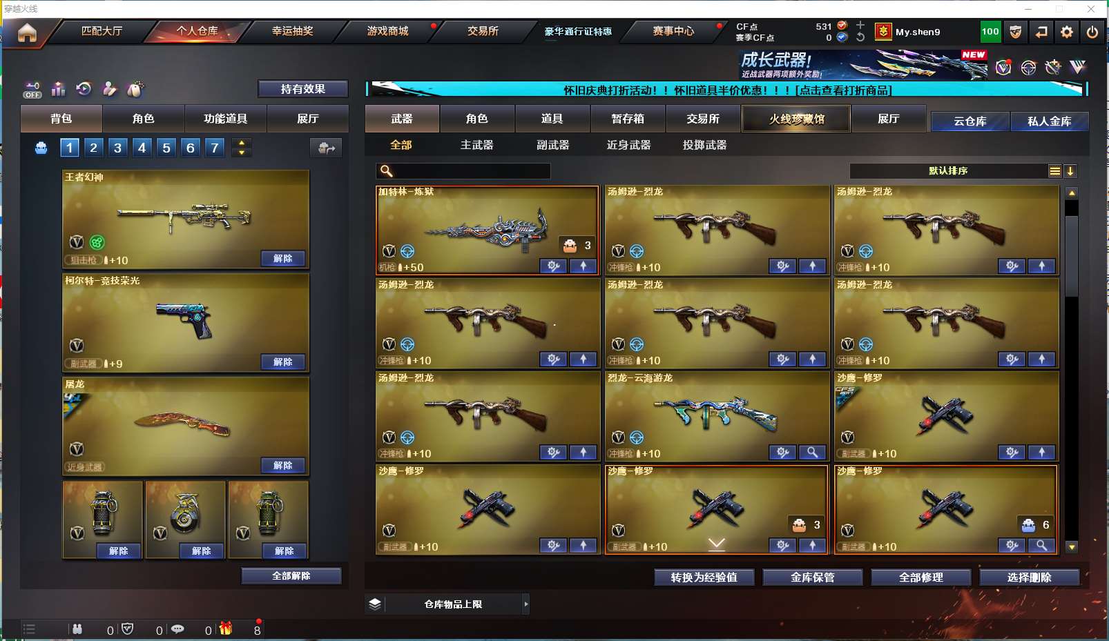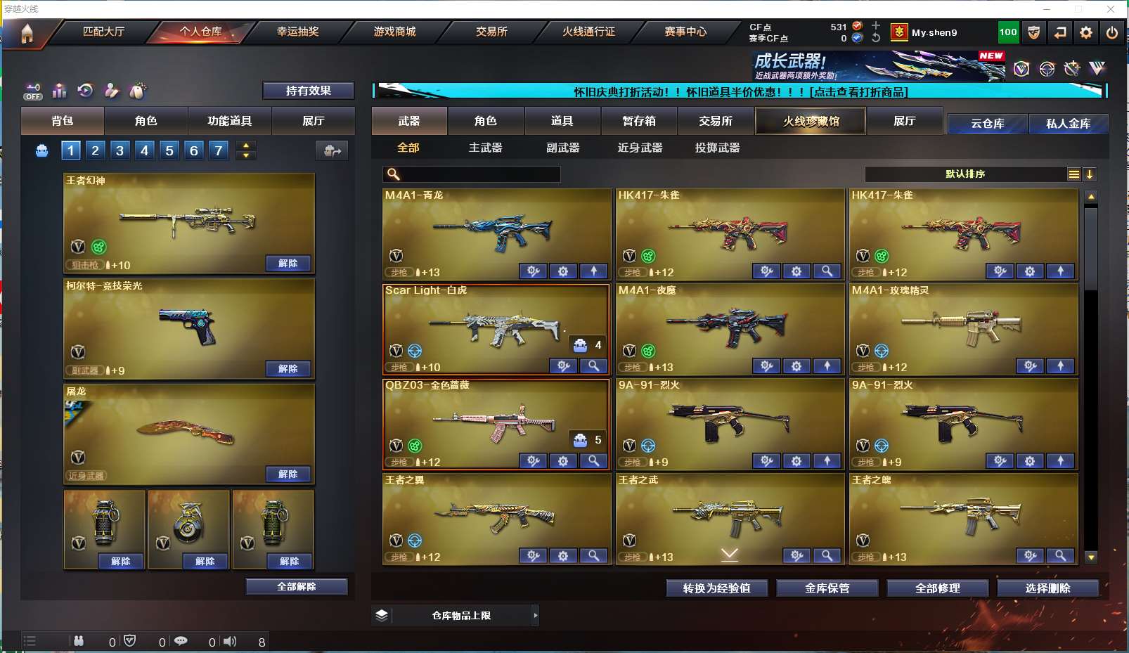 【m200幻神*2+王者幻神+usp雷暴+4防云悠悠】 【竞技荣光】【白虎】【qbz03金色蔷薇】 【7烈龙+4炼狱+盘龙+斯泰尔蝴蝶】【雷暴套装】【夜魔套装】 【黑武士网剧冠军武器套装】 【王者炎心 王者之城 王者之翼 王者之幻 王者之魄 王者之武】 【火麒麟+火麒麟音效卡】 【雷神+雷神音效卡+荣耀之魄皮肤+传奇n9皮肤】 【黑龙+黑龙音效卡】 【黑骑士+黑骑士音效卡】 【毁灭+毁灭音效卡】 【极光+极光音效卡】 【无影 黑武士 天启 青龙 朱雀 玫瑰精灵 9a91烈火】 ——【usp雷暴 沙鹰修罗 破空呛刃 柯尔特竞技荣光 天神cf网剧冠军武器套装 修罗云海游龙】——【屠龙 擎天 麒麟刺 斩神刀雷暴 马来剑夜魔 擎天竞技荣光 擎天云海游龙 屠龙云海游龙 王者之啸 擎天cf网剧冠军武器套装 龙啸烈火龙威】——【雷暴投掷武器套装*7 夜魔投掷武器套装*7 竞技荣光投掷武器套装】——【热门武器/小人呛】【炫金雷神 炫金骑士 裁决雪莉杨 裁决百城联赛天津 cop白鲨 】——【角色】【4防云悠悠】【春 凌霄 迷迭香 魅影 王者瞳闭月羞花 云海玲珑】