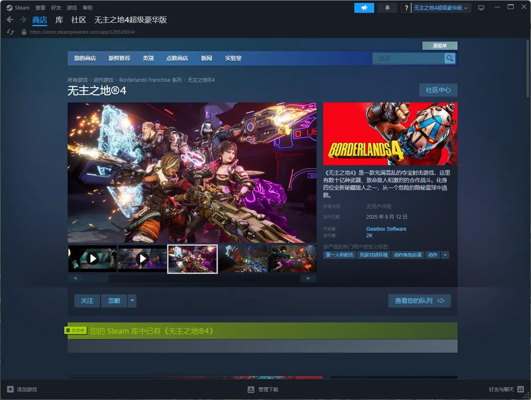 《无主之地®4-Borderlands® 4》预购-超级豪华版!全DLC!
