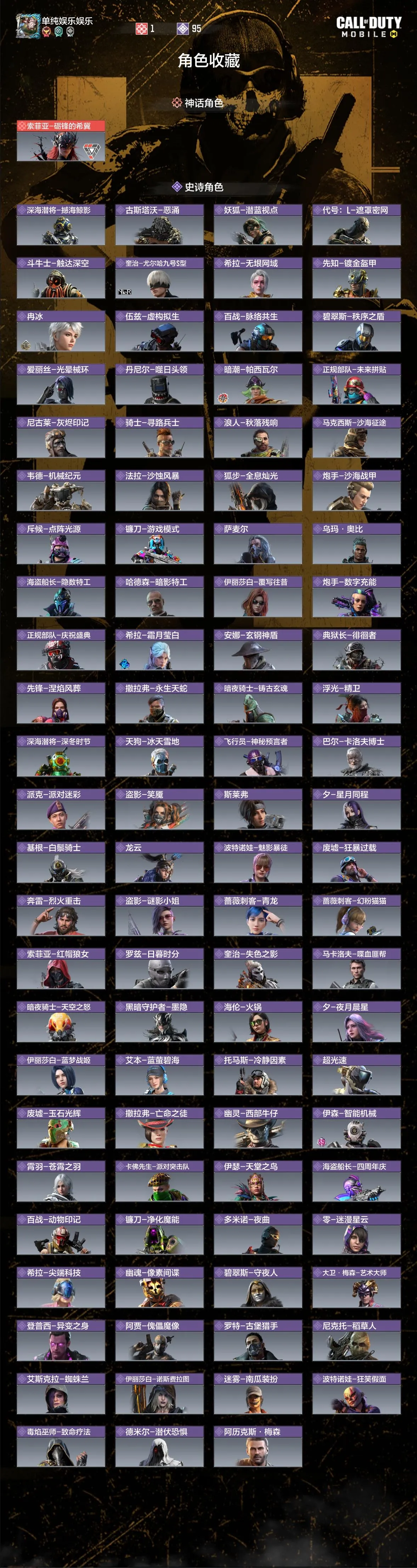 - 传说角色: 0