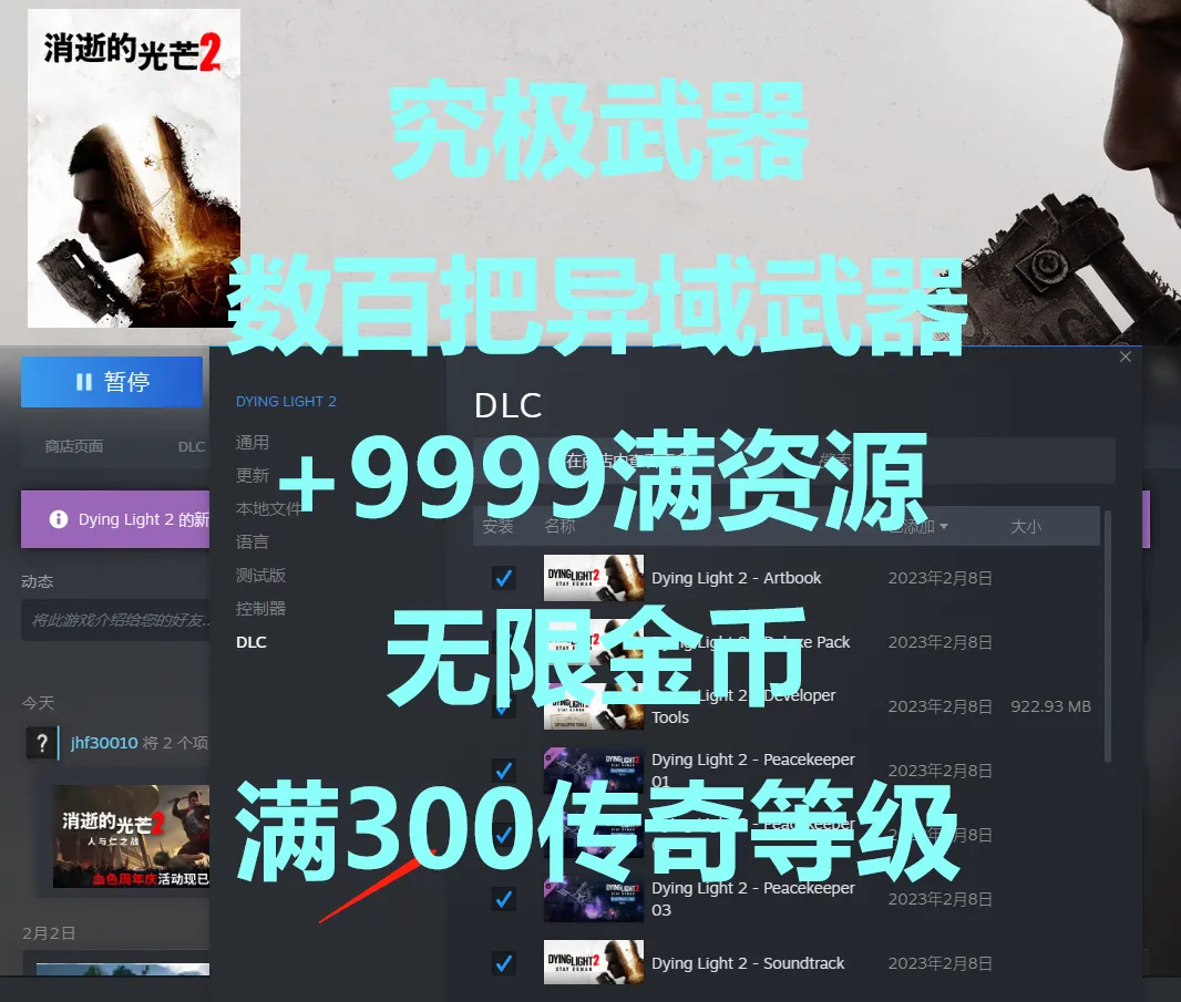 消逝的光芒2⭐终极版⭐1亿金币⭐白金传奇300⭐超多武器装备⭐全dlc商城清空⭐详情看描述
