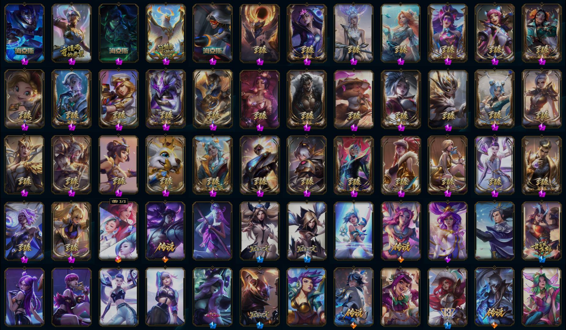 【重要皮肤】狼神英灵斯维因至臻 暗星女王黛安娜至臻 T1杰斯至臻 幻灵狮心蕾欧娜至臻 至高天凯尔至臻 天龙之子伊泽瑞尔至臻 北极星钢影卡蜜尔至臻 魔女阿卡丽至臻 魂蔷薇烈娜塔至臻 玉剑传说琴仙子至臻 斗魂觉醒萨科至臻 剪纸仙灵希维尔至臻 海珀利安小队X09星环灵风迦娜至臻 海之歌萨勒芬妮至臻 月蚀骑士赛娜至臻 幻灵战斗猫金克丝至臻 青花瓷拉克丝至臻 女帝黛安娜至臻 战斗学院蕾欧娜至臻 魔女婕拉至臻 魔女乐芙兰至臻 奥术师佐伊至臻 灵魂莲华提莫至臻 暗星墨菲特至臻 飞升战神潘森至臻 KDA二代卡莎至臻 KDA伊芙琳至臻 KDA伊芙琳2022至臻 KDA阿卡丽至臻 KDA阿卡丽2022至臻 电玩女神凯特琳至臻 源计划正义艾瑞莉娅至臻 源计划正义艾瑞莉娅2022至臻 绒毛菲兹至臻 绒毛菲兹2022至臻 玉剑传说武剑仙至臻 玉剑传说武剑仙2022至臻 未来战士锤石至臻 未来战士锤石2022至臻 海克斯科技嘉文四世 黎明使者卡尔玛 摄魂使者薇恩 新创战纪希维尔 胜利剑圣易 胜利女神希维尔 胜利之王泰达米尔 银白审判凯尔 女帝厄运小姐 玉剑传说神机花火 玉剑传说舞龙卫 点心宝贝阿木木 天龙之子斯莫德 胜利之树茂凯 胜利机器人布里茨 胜利女神奥莉安娜 胜利枪神格雷福斯 胜利枪神卢锡安 胜利之剑亚托克斯 觅心游侠卢锡安 幽梦玫瑰辛德拉 冰雪女神辛德拉 魄罗骑士瑟庄妮 夺命美人卡特琳娜 平安夜女神娑娜 魅惑女巫崔丝塔娜 大魔法锅布里茨 小恶魔菲兹 海之歌永恩 泳池派对辛德拉 泳池派对塔莉垭 泳池派对厄运小姐 泳池派对塔里克 泳池派对格雷福斯 泳池派对雷克顿 FPX李青 iG卡莎 iG艾瑞莉娅 SSG洛 SSG纳尔 SSG伊泽瑞尔 SKTT1扎克 SKTT1辛德拉 SKTT1娜美 SKTT1艾克 SKTT1阿兹尔 SKTT1雷克顿 SSW泰隆 SSW辛吉德 SKTT1劫 暗杀星奥莉安娜 暗杀星努努和威朗普 冰雪节格雷福斯 冰雪节辛吉德 防暴士兵格雷福斯 防暴士兵辛吉德 防暴天使凯尔 冠军蔷薇乐芙兰 冠军之矛卡莉丝塔 冠军之志瑞兹 鬼影森森茂凯 红桃杰克崔斯特 胡桃夹子萨科 蓝色忧郁崔斯特 密林猎手提莫 女猎手希维尔 圣诞精灵崔丝塔娜 圣诞狂欢努努和威朗普 圣诞玩偶波比 糖果使徒费德提克 无头骑士赫卡里姆 邪恶圣诞老人维迦 幸福女神乐芙兰 雪默丁格 永恒之森乐芙兰 勇者阿狸 勇者奈德丽 征服者阿利斯塔 暗影沃里克 冠军之箭艾希 魅惑女巫菲奥娜 阿木木主人不要我了 地底世界崔斯特 都铎王朝图奇 十五周年纪念希维尔 十周年纪念安妮 源代码乐芙兰 神凰行者瑞羽圣凰艾尼维亚 暗裔英雄盖伦 未来战士伊泽瑞尔 武装战姬厄运小姐 KDAALLOUT萨勒芬妮独立音乐人 KDAALLOUT萨勒芬妮明日新星 KDAALLOUT萨勒芬妮超级巨星 绝息圣堂洛