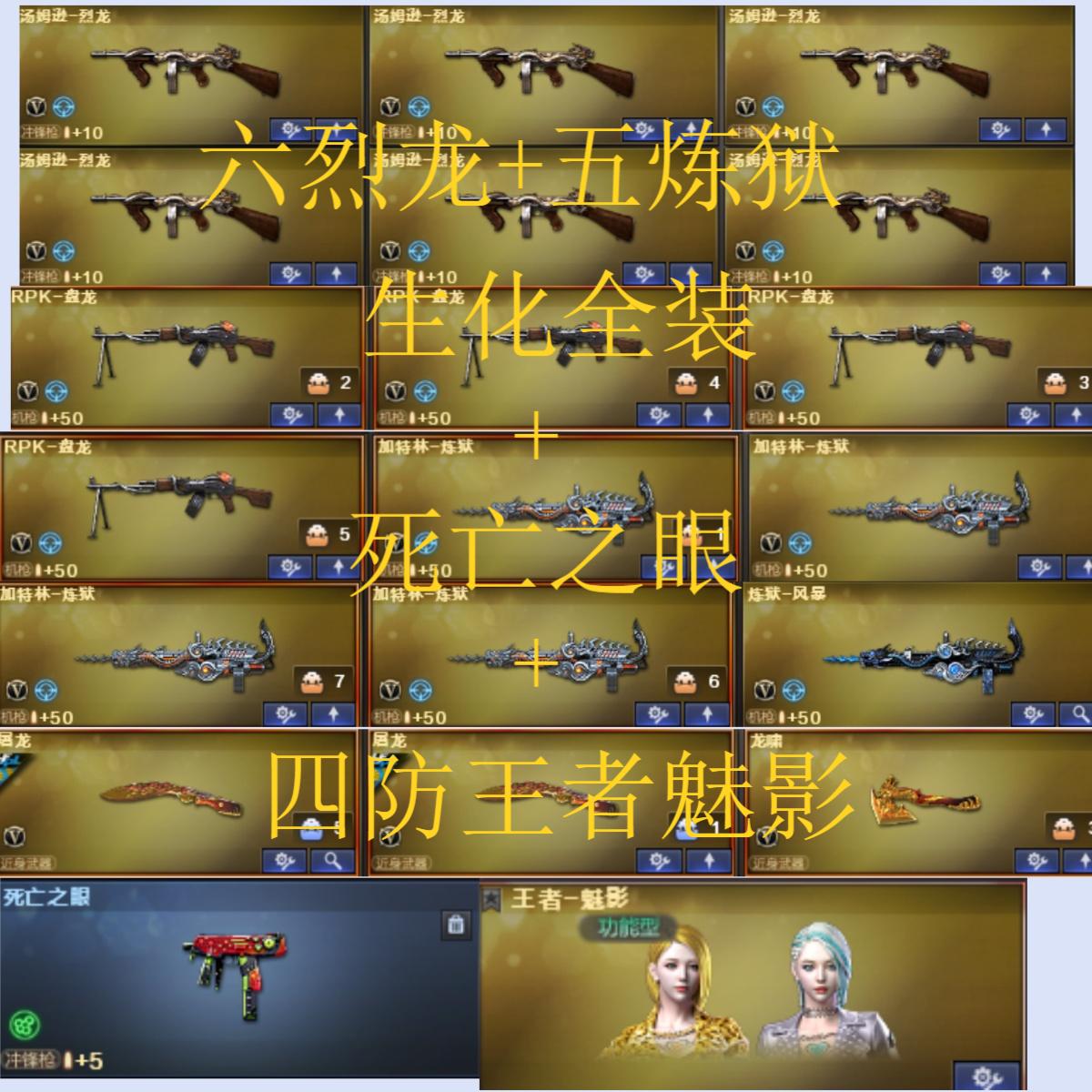 【不允许排位】125v❤M200幻神❤幻神宠儿❤6烈龙❤4盘龙❤5炼狱❤白虎❤金色蔷薇❤生化全装❤爆破全装