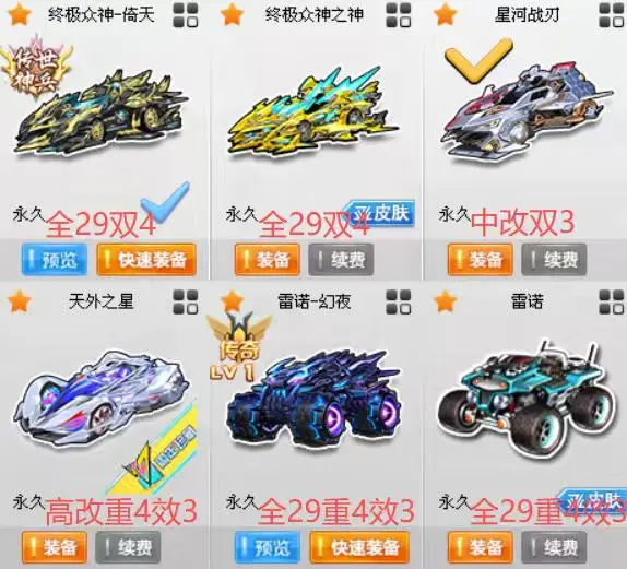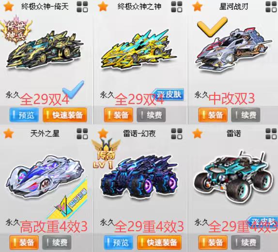 终极众神之神倚天全29双4,雷诺全29重4效3,天外之星高改重4效3,花木兰+8
