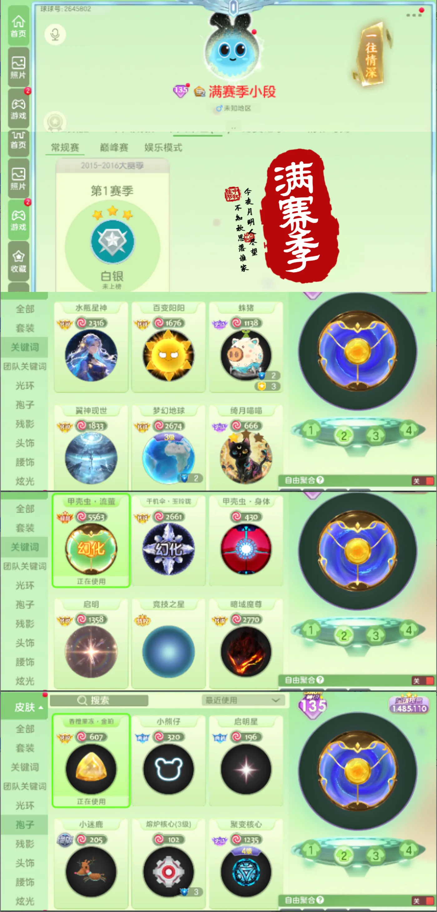 满赛季内吐辅助号人上人【幻化漩涡甲壳虫*幻化千机伞玉玲珑*竞技之星*红色甲壳虫*启明*蛛猪*梦幻地球