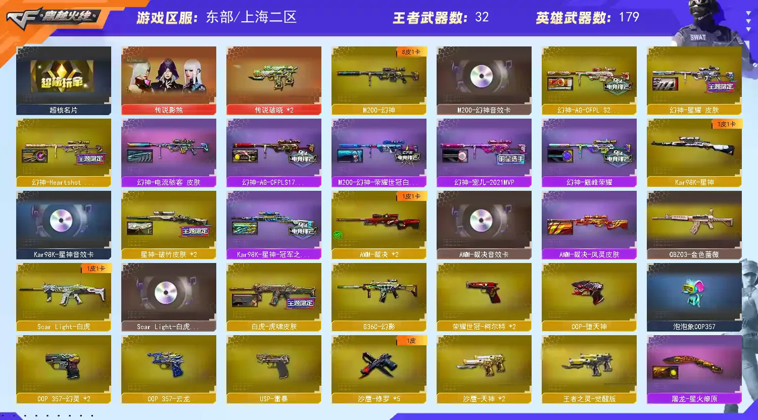 《传说影煞》《2传说破晓》《m200幻神➕幻神ags24➕幻神星耀➕幻神女团皮➕幻神宠儿➕幻神电流骇客➕幻神荣耀世冠白鲨➕幻神巅峰荣耀➕幻神ags17➕幻神音效卡》《星神➕星神冠军之星➕2星神破竹➕星神音效卡》《2裁决➕裁决凤灵➕裁决音效卡》《王者风神》《王者星霆》《usp雷暴 cop堕天神 cop幻灵 cop云龙 世冠柯尔特 泡泡象cop 1911大黄蜂》《2炽芒蝶刃 王者玉锋》《世冠套》《堕天神套》《幻灵套》《云龙套》《王者雷影 王者风势 王者火魄》《白虎》《青龙之魄》《g36幻影》《朱雀》《青龙》《qbz王者蔷薇》《qbz金色蔷薇》《烈火》《m4猎神》《金色蔷薇古蛇迷踪》《毁灭》《火麒麟》《黑龙》《雷神》《黑骑士》《黑武士》《2盘龙 6炼狱 6烈龙 双面神 mk5炽火炎龙 斯泰尔蝴蝶 生存/死亡之眼 太极扇火凤》《朱雀蛇隐踪》《火麒麟零纪元》《雷神小红》《毁灭孙三炮》《王者芭蕾特英勇金戈》《cop白鲨》《迷你宝贝》《地狱征服者超越max》《迷你救赎猎手》《四防云悠悠 华 荒漠琉璃 四防影豹 隼 奇洋探员 蛇隐踪 四防王者葵貂蝉 四防王者凌霄 云海玲珑 四防葵赛博朋克 四防灵狐者职业经理》《n9语音包》《火麒麟音效卡 黑骑士音效卡 毁灭音效卡 雷神音效卡 芭蕾特碧霄极光音效卡 屠龙云海游龙音效卡 白虎音效卡 死神雪域霜狐怀旧音效卡 昌龙怀旧音效卡 极光音效卡 超新星热带奇洋音效卡》《黑骑士少林 白虎虎啸 毁灭星耀 雷神女团皮 火麒麟白虎 屠龙星火燎原 火麒麟巅峰荣耀 黑骑士s2021 雷神雪域霜狐 毁灭s2018 毁灭战神张飞 传奇石头横秒之巅 黑骑士战神马超 火麒麟传奇even 毁灭s16 火麒麟华夏之心 毁灭荣耀之怒 雷神荣耀之魄 雷神白鲨s14 》