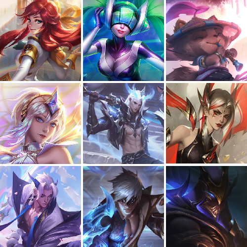 【重要皮肤】人工智能悠米至臻 至高天凯尔至臻 青花瓷千珏至臻 北极星钢影卡蜜尔至臻 心之钢永恩至臻 魔女阿卡丽至臻 斗魂觉醒萨科至臻 斗魂觉醒派克至臻 墨之影武者亚索至臻 花仙使者卡特琳娜至臻 绝息圣堂厄运小姐至臻 剪纸仙灵希维尔至臻 青花瓷丽桑卓至臻 北极星使者沃里克至臻 太空律动魔音海妖娜美至臻 海珀利安小队X09星环灵风迦娜至臻 星之守护者辛德拉至臻 星之守护者艾克至臻 海之歌萨勒芬妮至臻 西部魔影猎天使恶魔泰隆至臻 幻灵战斗猫金克丝至臻 青花瓷拉克丝至臻 神凰行者烈羽焰凰霞至臻 魅惑女巫莫甘娜至臻 女帝黛安娜至臻 太空律动璐璐至臻 魔女婕拉至臻 魔女乐芙兰至臻 真实伤害赛娜至臻 星之守护者索拉卡至臻 灵魂莲华提莫至臻 灵能特工伊泽瑞尔至臻 源计划逆流塞拉斯至臻 王国机神玄武盖伦至臻 暗星墨菲特至臻 神龙尊者炎龙瑟提至臻 黑夜使者凯隐至臻 神龙尊者均衡之龙沃利贝尔至臻 征服者贾克斯至臻 飞升战神潘森至臻 焰执事布兰德至臻 KDA二代卡莎至臻 KDA阿狸至臻 KDA阿卡丽至臻 战斗学院拉克丝至臻 星之守护者妮蔻至臻 源计划正义艾瑞莉娅至臻 真实伤害奇亚娜至臻 绒毛菲兹至臻 玉剑传说武剑仙至臻 殿堂传奇乐芙兰 水晶巫灵泽拉斯 灰烬守护者慎 灰烬骑士派克 海克斯科技安妮 海克斯科技瑟庄妮 海克斯科技雷克顿 海克斯科技斯维因 海克斯科技吉格斯 海克斯科技波比 海克斯科技阿木木 海克斯科技魔腾 西部魔影炽天使永恩 水晶掠夺者卡兹克 水晶圣骑艾希 水晶圣骑塔莉垭 暗星科加斯 零之枪骑赫卡里姆 新创战纪希维尔 胜利女神娑娜 胜利之王泰达米尔 胜利巨口克格莫 舞会公主安妮 创星之灵璐璐 荣誉使者玛尔扎哈 养蜂人辛吉德 玉剑传说舞龙卫 玉剑传说星仙子 玉剑传说翼剑仙 黎明使者薇恩 天龙之子斯莫德 春晖神女拉克丝 你看见过我的熊猫吗安妮 北辰之威内瑟斯 广寒仙子嫦娥 烈焰美人薇恩 王国机神苍狼瑟提 胜利女神瑟庄妮 胜利之树茂凯 胜利机器人布里茨 胜利女神奥莉安娜 胜利枪神格雷福斯 胜利枪神卢锡安 胜利之剑亚托克斯 水晶玫瑰阿克尚 碎心之拳蔚 甜心之羽霞 觅心游侠卢锡安 觅心女王艾希 觅心萝莉金克丝 觅心猎手薇恩 幽梦玫瑰辛德拉 北极星神黛安娜 寒冬精灵璐璐 持胡萝卜的雪人易 冰雪女神辛德拉 魄罗骑士瑟庄妮 夺命美人卡特琳娜 平安夜女神娑娜 魅惑女巫迦娜 魅惑女巫莫甘娜 魅惑女巫崔丝塔娜 魅惑女巫奈德丽 魅惑女巫伊莉丝 死亡誓约劫 死亡誓约维克托 灵魂收割者索拉卡 海之歌萨勒芬妮 海之歌永恩 泳池派对佐伊 泳池派对辛德拉 泳池派对黑默丁格 泳池派对厄运小姐 泳池派对塔里克 泳池派对格雷福斯 泳池派对李青 泳池派对蕾欧娜 泳池派对雷克顿 电玩战魂赫卡里姆 穿星魔锋赵信 御星魔矢艾希 制胜金靴李青 DRX亚托克斯 DRX千珏 DRX阿卡丽 DRX凯特琳 DRX艾希 DRX茂凯 EDG佛耶戈 EDG悠米 DWG奈德丽 FPX锤石 FPX薇恩 FPX墨菲特 SSG霞 SSG塔莉垭 SSG伊泽瑞尔 SKTT1辛德拉 SKTT1娜美 SKTT1瑞兹 SSW锤石 SSW雷恩加尔 SSW泰隆 SSW图奇 SSW辛吉德 SKTT1贾克斯 SKTT1劫 暗杀星慎 Fnatic库奇 Fnatic古拉加斯 Fnatic卡尔萨斯 冰雪节辛吉德 防暴天使凯尔 冠军典狱长锤石 冠军掠夺者卡兹克 冠军之刃锐雯2016 冠军之血希瓦娜 冠军之隐劫 鬼影森森茂凯 鬼影重重魔腾 胡桃夹子萨科 惊悚派对费德提克 蓝色忧郁崔斯特 破空枪骑孙悟空 圣诞精灵崔丝塔娜 圣诞开心鬼提莫 圣诞狂欢基兰 圣诞狂欢努努和威朗普 圣诞老人古拉加斯 圣诞驯鹿克格莫 糖果使徒费德提克 无头骑士赫卡里姆 邪恶圣诞老人维迦 雪默丁格 野兽猎人德莱文 野兽猎人泰达米尔 勇者阿狸 征服者韦鲁斯 暗影沃里克 阿木木主人不要我了 2024全球总决赛佛耶戈 2023全球总决赛雷克顿 2022全球总决赛阿兹尔 2021全球总决赛嘉文四世 波比的巧克力工坊 都铎王朝图奇 十五周年纪念希维尔 十周年纪念安妮 源代码乐芙兰 神凰行者瑞羽圣凰艾尼维亚 胜利凤凰艾尼维亚 斗魂觉醒佛耶戈 斗魂觉醒莎弥拉 暗裔英雄盖伦 DJ娑娜 大元素使拉克丝 灵魂守卫乌迪尔 绝息圣堂洛 魔女娜美