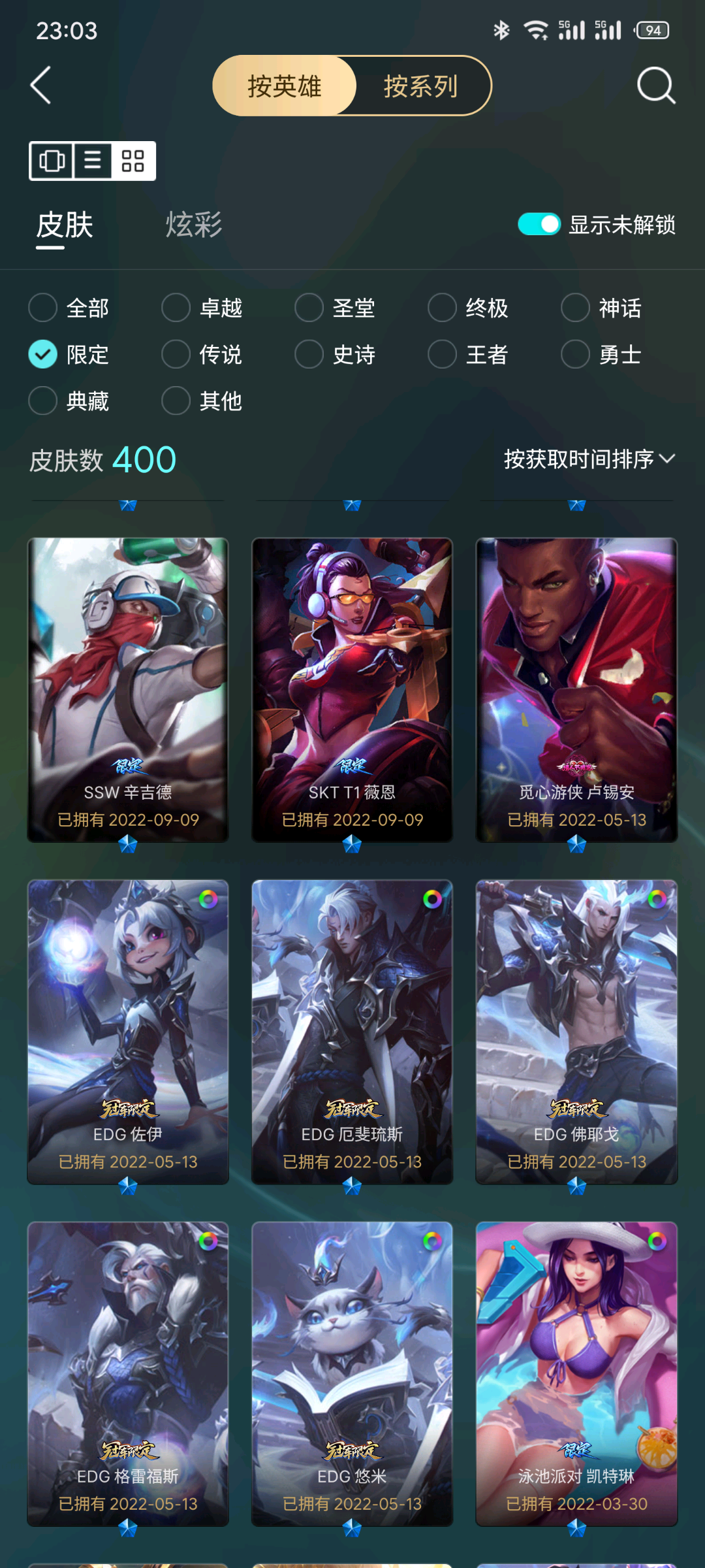 班德尔城联盟三区 灵活黄金二全套EDG冠军皮签名版 400皮 原皮300