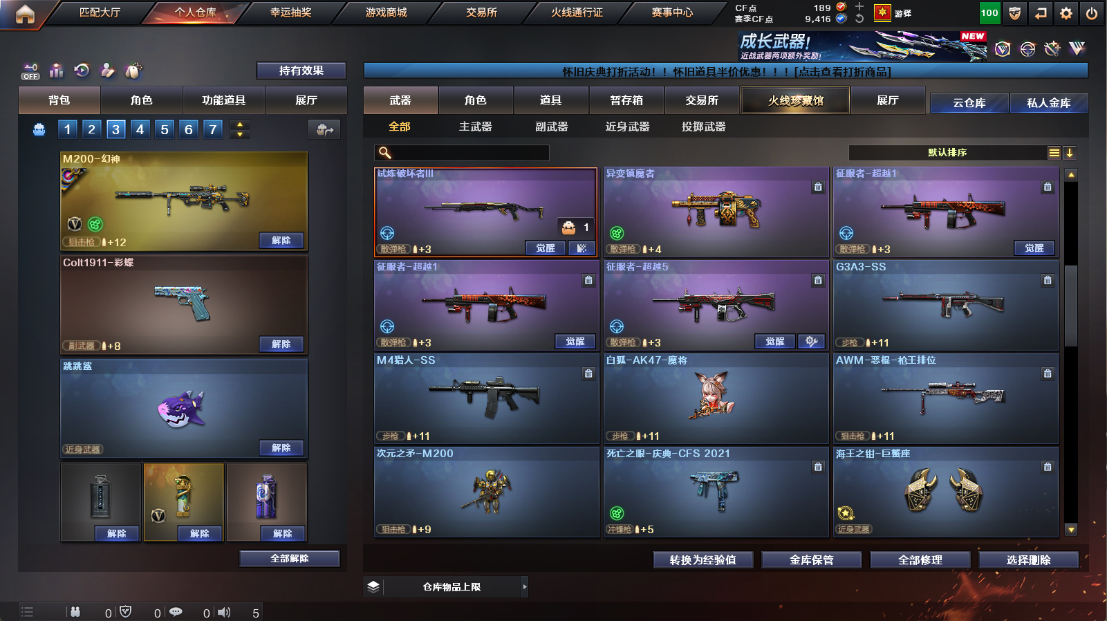 【传说辉光】【传说幽冥】【m200幻神+幻神heartshot皮肤+幻神音效卡】【裁决】【白虎+m4青龙】【金色蔷薇古蛇迷踪】【barrett金色蔷薇】【黑骑士+机械迷城穹宇】【朱雀蛇隐宗+白狐ak47魔将+次元之矛m200+跳跳鲨】【满配蛇隐宗+鹰+雨棠】【炼狱末日审判+白虎大汉风骨】【超级背包/虎牙炫彩背包/a背包套装扩展券/永久ac/永久工具钳/永久手雷包】