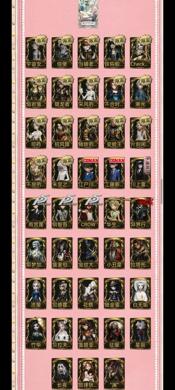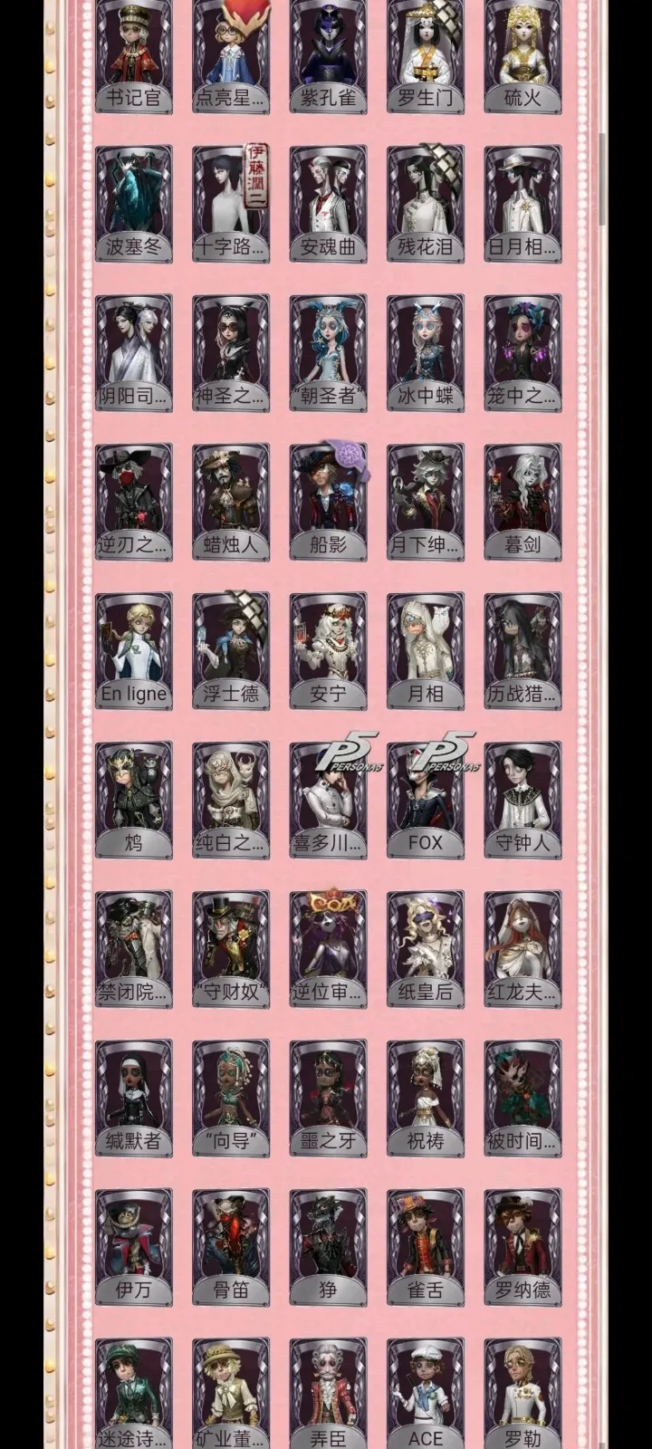 租号必看,开挂必报警 恶意毁号必报警 报警报警报警报警报警报警报警报警报警报警报警报警报警报警!!!! 1-挂机封号必报警处理 挂机封号损失 查ip 报警处理 禁止使用外挂,此帐号非账号问题不可撤单! 2-官方账号密码直接登陆,禁止游戏内刷喇叭说卖号骗人,抓一次直接报警, 禁止开挂,本账号经过网络财产备案,一直发现直接报警处理不会登陆的租客请下载 taptap 找第五人格下载游戏 3-账号财产价值很高,本店24小时在线,恶意投诉秒顶改密,直接拉黑,永久不让租 4-使用外挂,脚本等一切破坏游戏平衡,在平台提取实名ip(都是vzfb实名消费)直接立案追责,三倍赔偿账号价值 5-本店文明租号,你好我好大家都好。游戏本身就是消遣娱乐的地方,切勿消极对待,切勿以身试法,文明租号,快乐你我他。祝每个租客都有好心情,维护好环境。 6-游戏里任何东西都不要想着去破坏,试图解除二级密码的,一经发现直接拉黑。 7-游戏里涉及到任何钱财账号交易,一律不要相信,天上不会掉馅饼,如有财产损失,与本账号无关,文明租号。昔日的预言者 I稀世时装 限定 限定 限定 限定 限定 宇宙女巫 信使 当铺老板 铁钩船长 Checkmate 限定 限定限定限定 限定 熔岩蛋糕 猎龙者 采风的仙灵 不合时宜的危色弗 溯光 司药 招风旗 精致的笑容 变王 片刻闲暇 限定 限定 CONAN CONAN 不屈的信仰 未至之人 江户川柯南 工藤新一 川上富江 P P 雨宫莲 明智吾郎 CROW 华生小姐" 异界行者 耶梦加得 盛宴伯爵 金纹大触 小丑皇 拉塔托斯克 流萤 尼德霍格 花祭 暗金蛋糕 白无垢 竹华 贝拉夫人 盖提亚之遗 征服 星辰 长夜 欧律狄刻 "渊” 点击领券 麒麟商人 罪木蜜柑 王马小吉 天海兰太郎 奥村春 新岛真 佐仓双叶 NAVI 高卷杏 PANTHER P 人 非 CONAN CONAN PERSC 土 坂本龙司 九月 敖烈 毛利小五郎 毛利兰 服部平次 灰原哀 安室透 贝尔摩德 B.Duck期 广津柳浪 江户川乱步 冬 吉尔达 诺晏 蛋仔对 O. 雷 奇趣美乐蒂 蛋小黄的好朋友 亚伯拉罕总香 爱德华梅森 摩诺 剪刀手爱德华 金 捣蛋裘克 星航之旅 白孔雀 最后的荣光 窃梦行者 猩红新娘 雪原猎人 等风来 暮辞朝归 《卡门》 异星 蛋壳先生 海女巫 灰烬狂想 Lady K ChefK 反光镜 Co Bot K 观测者 花边新闻 零件拍档 气胎 报纸怪客 COR 线控信号 末世搜救 紧急运输 独行者 黑郁金香 达芬奇 绿纹大触 白纹大触 林中骑士 稻草人 藤 佛 煸炉 树形背景板 双一 炽天使 采药人 永生花 传信官 斗牛土之吻 罗刹绯春 阿努比斯 镏金铜鹿 梅林 白胡子 文学教授 考古教授 限定 弹簧手 白鹰之舞 海怪船长 “驯服” 丰悦 怀古 正位审判 “苏珊娜” 爰神之吻 诡笑症 Re-Swim 归来者 纸心 “月佑者” 香薰圣拿 情懒的兔先生 水晶烛台 长腿小姐 窥伺之心 不愿醒来的女孩 书记官 点亮星星的女孩 紫孔雀 罗生门 硫火 波塞冬 十字路口的美少年 安魂曲 残花泪 日月相随 阴阳司公 神圣之辉 “朝圣者” 冰中蝶 笼中之蝶 逆刃之鞭 蜡烛人 船影 月下绅士 暮剑 En ligne 浮士德 安宁 月相 历战猎人 鸩 纯白之盐 喜多川祜介 FOX 守钟人 禁闭院长 ”守财奴” 逆位审判 纸皇后 红龙夫人 缄默者 “向导” 噩之牙 祝祷 被时间遗忘的男孩 伊万 骨笛 狰 雀舌 罗纳德 迷途诗人 矿业董事 弄臣 ACE 罗勒 女高音 “宴舞" 夜光杯 逐浪的玫瑰 西部大亨 霰 琴键 “亡灵” 校监夫人 荒野女巫 多加雷萨 奶酪 电解 衔尾蛇 不羁的浪漫 黑女巫 动植物学教授 “玛利亚” 动物女巫 温暖的平安夜 钨 藏 纸翼小姐 玛吉努 天使向导 年岁 淋浴 大师牌 烟花盖伊 灵蛇 圣洁 黑鸦 异相睡眠 KNIGHT-c3 BISHOP-f1 斐乐蒙的圣坛 郁金香之梦 动力芯 衣帽架先生 聚光灯下 “琥珀” 噬恶之渊 桃面书生 流离的月光 蓝种先生 善忘的海马体 多色印刷 善恶的本性 “伊始新篇" 异动指针 20 潘塔龙 吟游诗人 墨韵 收藏品 沙滩漂移 D 澄明的理性 伊布 “膨化” 芳泽霞 VIOLET S 艺术品商人 厌离 诅咒黑云 Vote盒子 涅粲 美人偶 园丁布偶 致命的邀请函 残局的王将 兔美的魔法棒 梦魇结晶 玫瑰之下 唤潮 宽恕 书中蝶 无尽森林 虎尾 邪火宝箱 萤之羽 见证 父亲的怀表 遗忘之花 对决 茅龙书 星云瓶 燃烧的乐章 调制架 玉麒麟 毁誉之印 最后的故事 禁忌的预言 折柳 黄玫瑰之骸 呼唤 咖啡壶 奇珍随身物品 星星糖 黯岩护符 凝聚之水 玫瑰手杖(蓝) 星见 蝴蝶花 荒诞之令 尼古拉斯的遗嘱 剪骨钳 剧毒囊体 盛宴之杯 邪火令 断剑 催眠仪 鬼披肩 万花筒 束缚之心 许愿瓶 火焰精灵 科学的艺术 燃烬 星象仪 纯银子弹 急冻核心 焚烬 转相仪 卡诺匹斯罐 卡住的齿轮 金算盘 舞会彩球 斗牛布 加拉尔 禁忌之匙 日与月 皮纳塔 沉沦的面具 匣中风云 机关囚笼 子夜来使 零钱碗 介壳虫 毒液笔 巨人风车 活化音响 茶话时间 约束 手机 乾坤袋 尖叫潘笛 沙滩镜 ....... 海之低语 白泽玉 全冰饮料 晴天娃娃 夜星 沙漠精灵 摇头鬼 未奏的乐章 案件模拟 迅捷如风 欢呼 狐狸玩偶 海鲜桶. 微缩星球 结冰的齿轮 回旋镖 笔墨藏锋 漂浮 .爆燃 “全熟" 纠缠 福尔摩斯冒险史 酩酊 协律. 记忆囚笼 点击领券 [动态头像]红蝶[动态头像] 夜... [头像] 黑白熊[头像] 腐川冬子[头像] 山田一... [头像]叶隐康... [头像] 桑田怜恩[头像] 切响子[头像] 瑟雷丝... [头像]战刃骸 . [头像]十神白夜 [头像]开服狂欢 [动态头像]先知[动态头像]魔... [动态头像]律师 [头像]深渊的.. [动态头像] 幸... [头