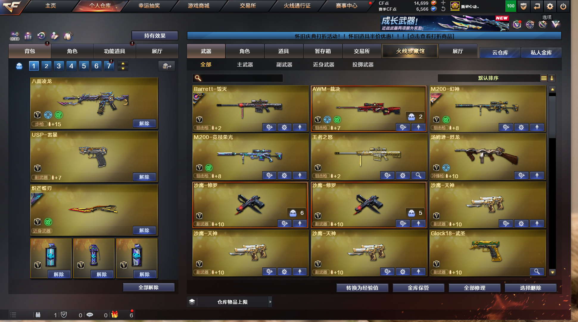 【11王者1炫金】【2传说幽瞳】【m200幻神+幻神cfs2022+幻神电流骇客】【USP雷暴+竞技柯尔特+cop雷霆王者】【炽芒蝶刃+炽芒蝶刃破浪逐光皮肤】【m200竞技荣光】【王者星神+星神枪娘默】【裁决】【传说幽冥】【竞技荣光套+四防云悠悠】【白虎】【G36幻影+八面凌龙+银翼】【觉醒王者霜心】【QBZ王者蔷薇+王者雷影】【烈龙+双面神+黑龙吞噬者+斯泰尔蝴蝶+死亡之眼】【金色蔷薇+金色蔷薇女团皮+金色蔷薇量子蔷薇】【火麒麟轻羽+火麒麟女团皮+火麒麟枪娘+毁灭虹光风暴皮肤+毁灭女团皮】【黑骑士音效卡+超新星热带奇洋热带奇洋音效卡】【关小雨+枪娘樱+晴雅+星际战将+研+雨墨+岚兮儿+满配蛇隐宗+四防王者炫+零热舞青春+职业选手】【火麒麟+雷神+黑骑士+毁灭】【朱雀枪娘菲+朱雀蛇隐宗+超新星枪娘安琪儿+火麒麟灵狐+金色蔷薇枪娘阿敏+玄武枪娘火莲】【猫猫手套+手斧镜