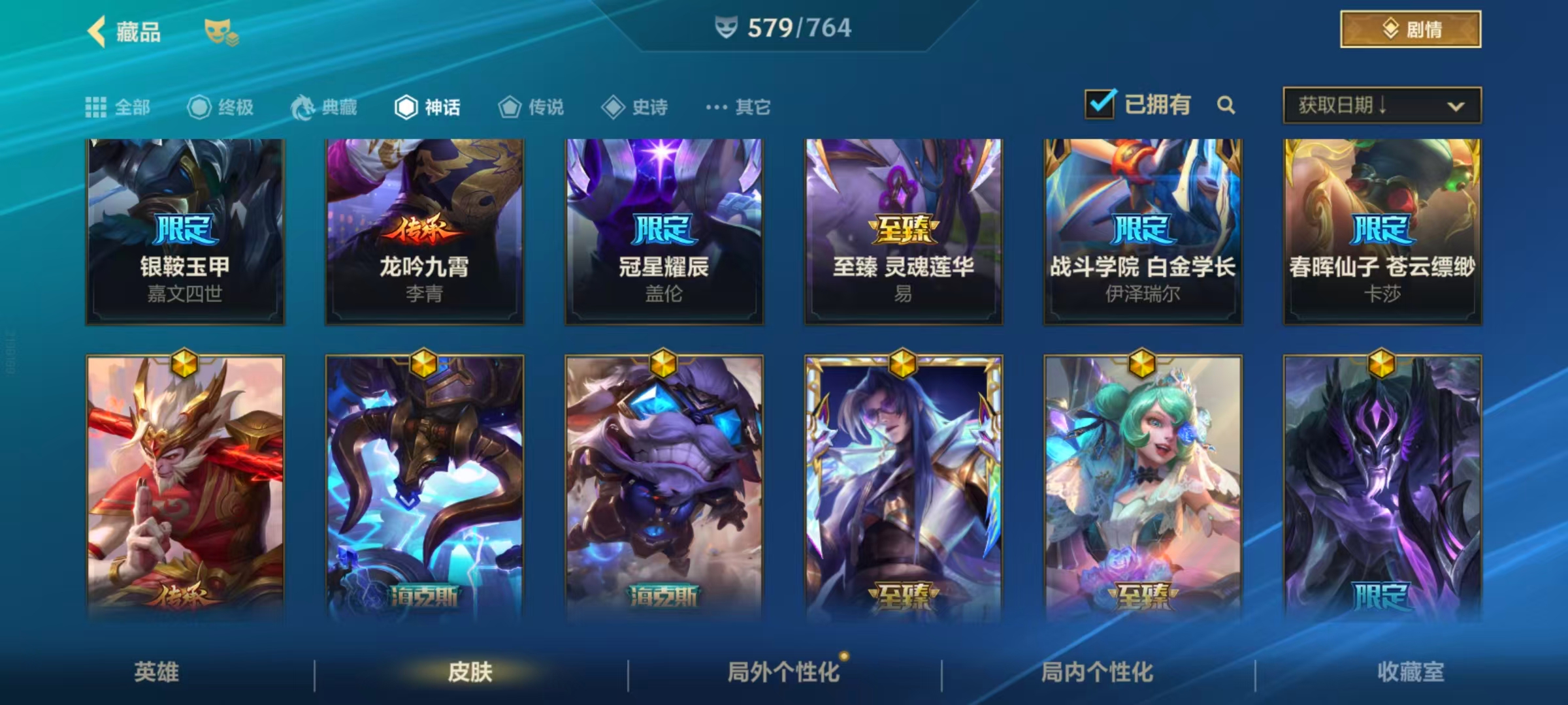 【安卓】 【允许排位】可排位✨4典藏✨一半神话✨74传说✨一堆史诗