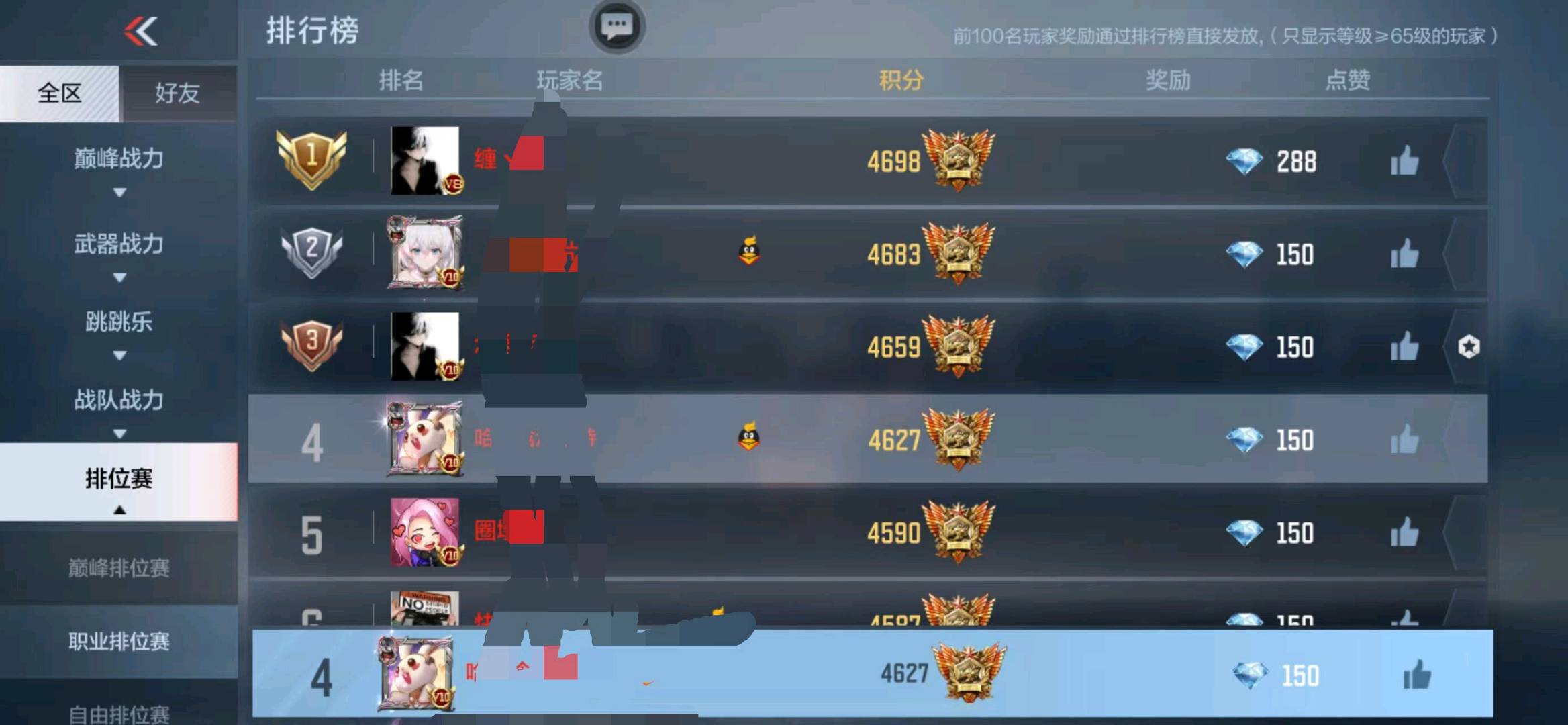 - 职业排位段位: 传奇