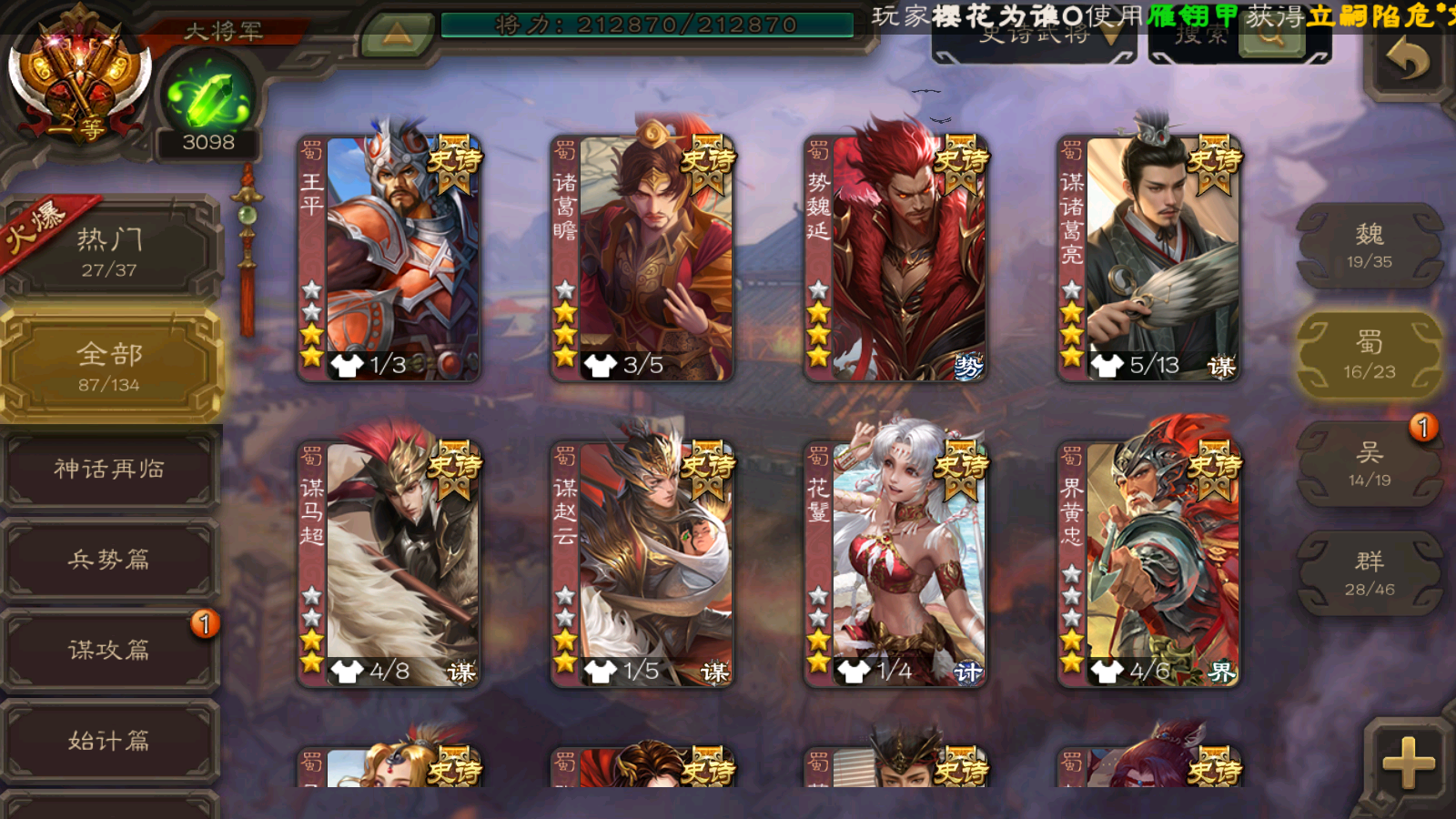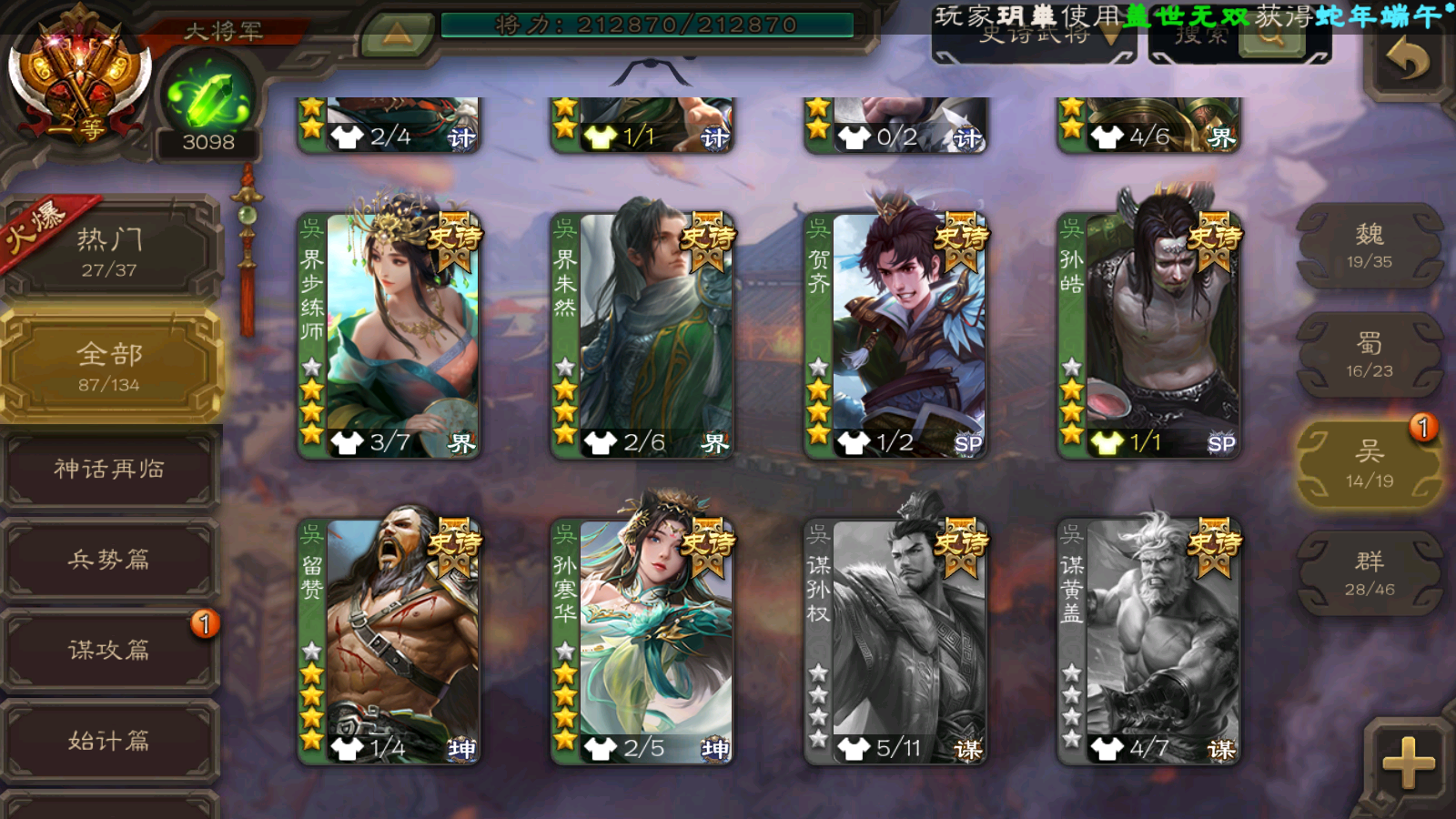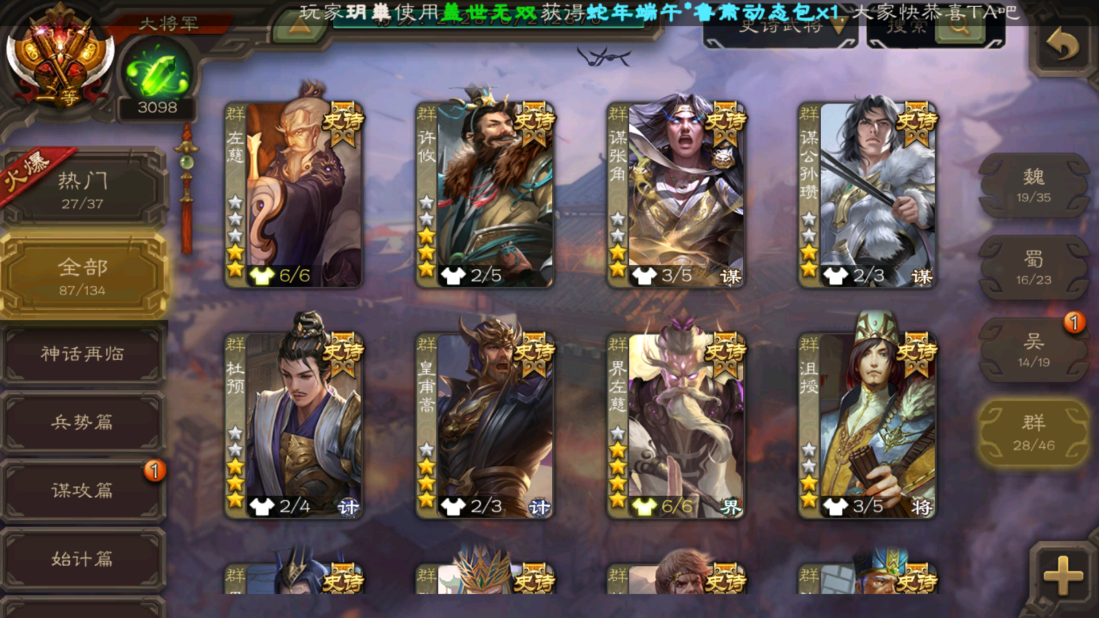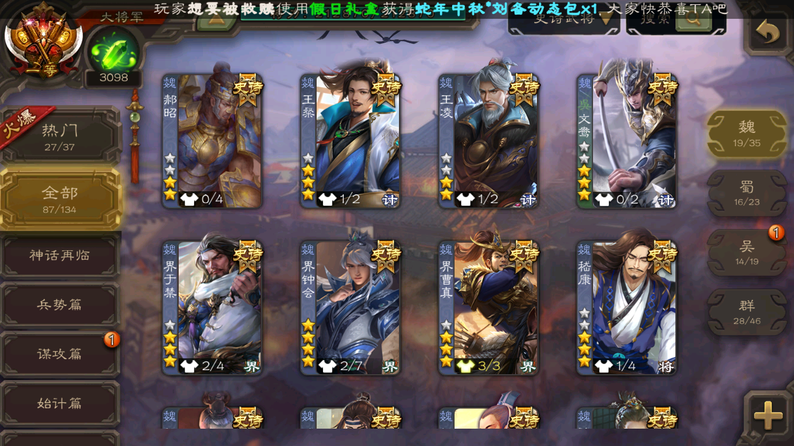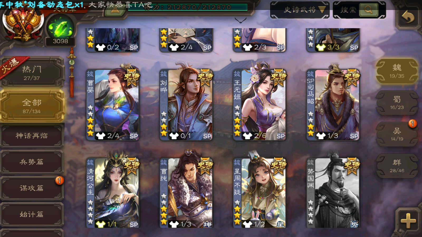 【全平台】 【锦鲤有卡】三卡一等87史诗势魏延笮融势太史慈势陆郁生友诸葛清河公主文鸯谋诸葛神甘神郭嘉