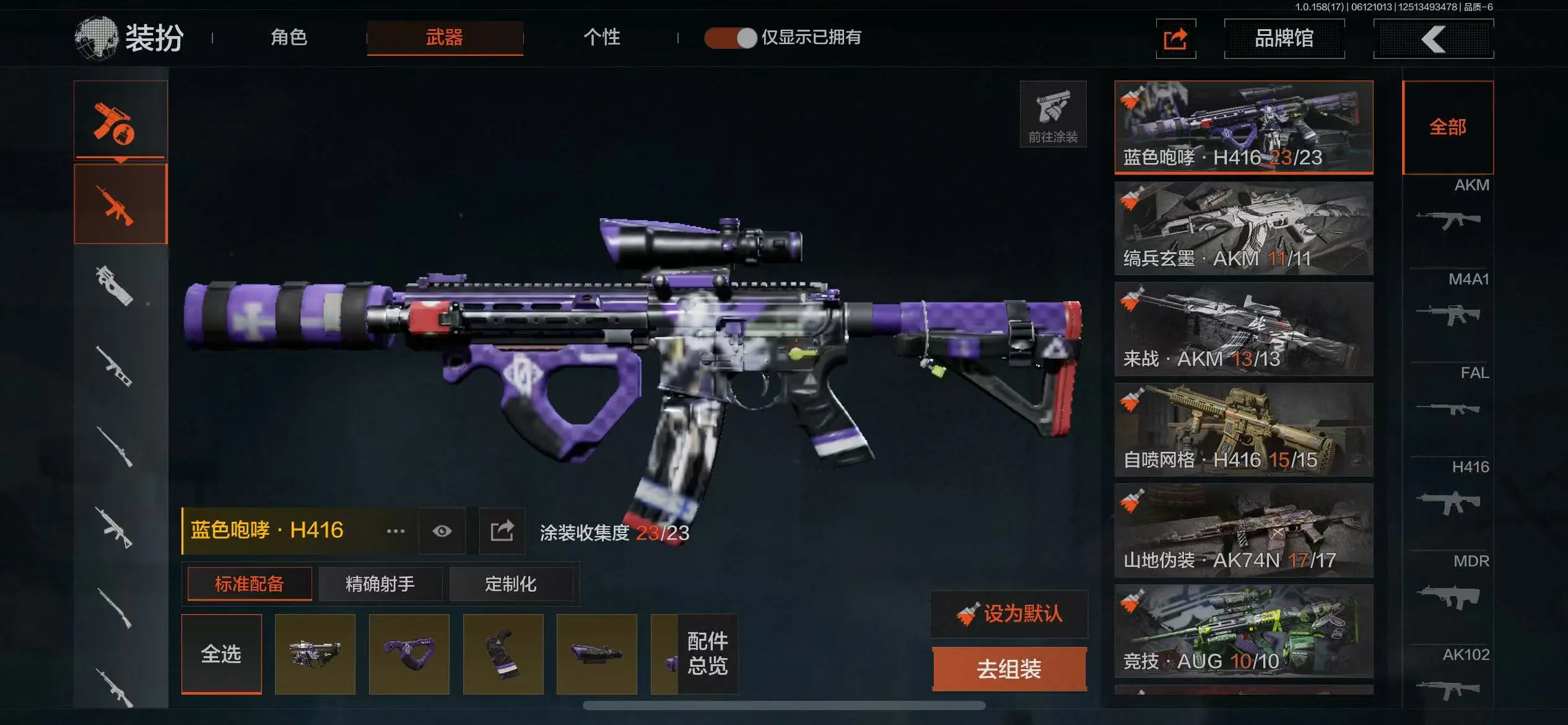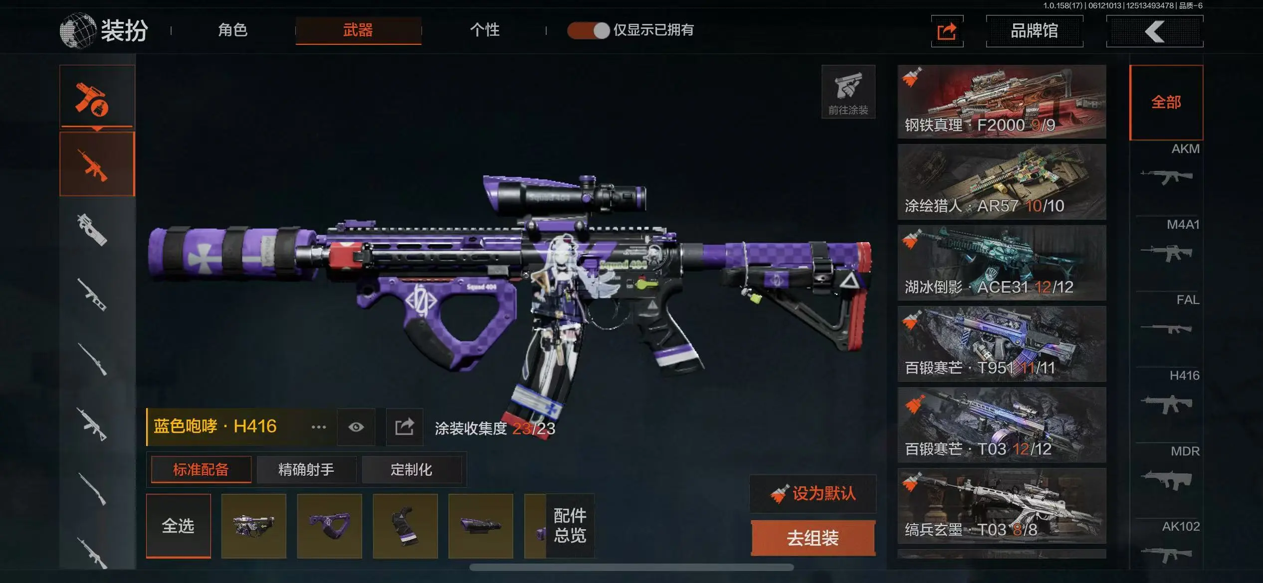 等级30 瀚星斩铁 玉鸾挂枝手套 钢铁壁垒作战服 蓝色咆哮H4 编兵玄墨AK+T03 来战AK 山地AK 竞技AUG 钢铁真理F 湖冰倒影ACE 百锻寒芒T95+T03 秋宴FAL