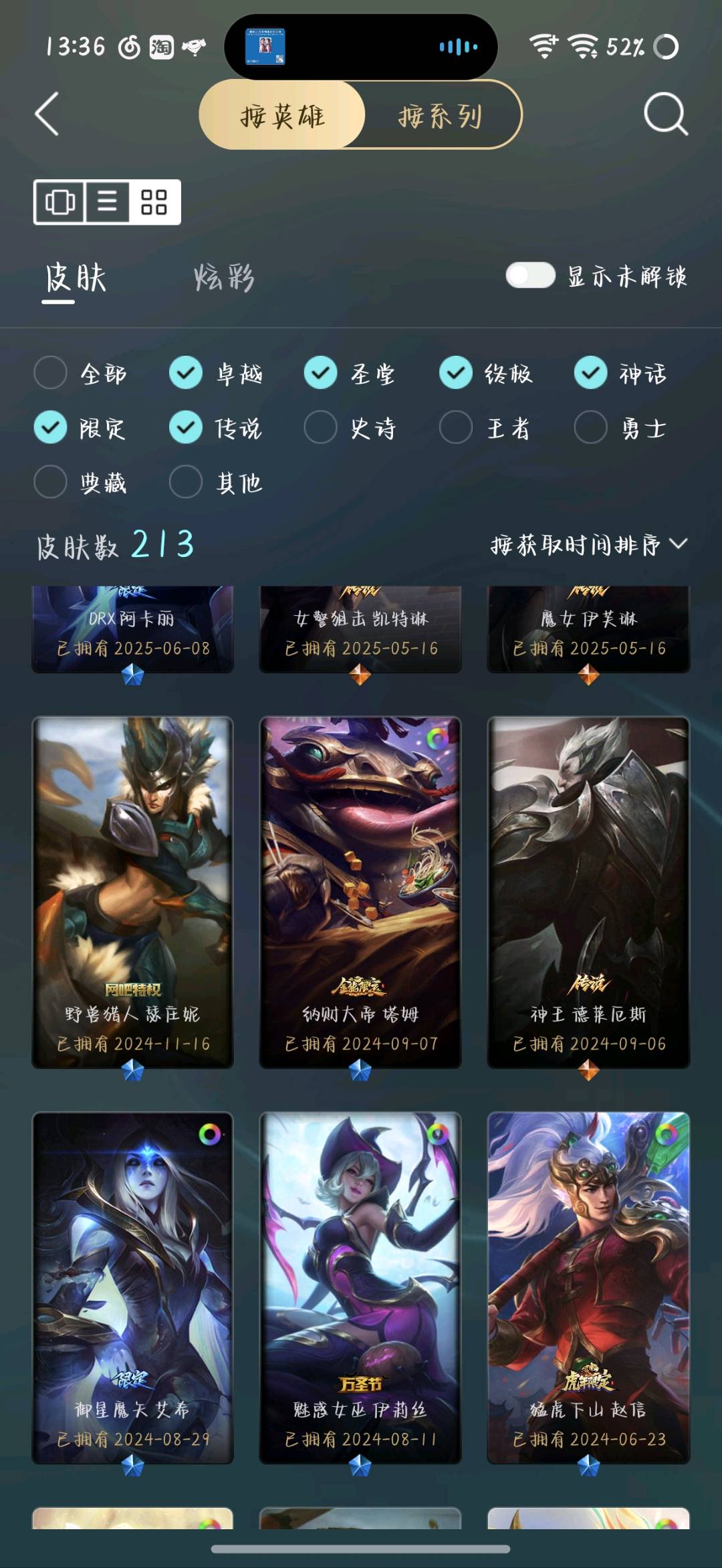 1000皮肤❤️51神话edg套❤️龙刀❤️神龙李青亚索❤️摄魂vn❤️