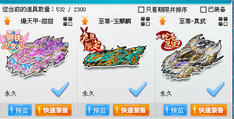 3s=双年限=满配至尊真武&至尊玉麒麟=满改爆天甲甜甜奥丁=小贵妃=美衣
