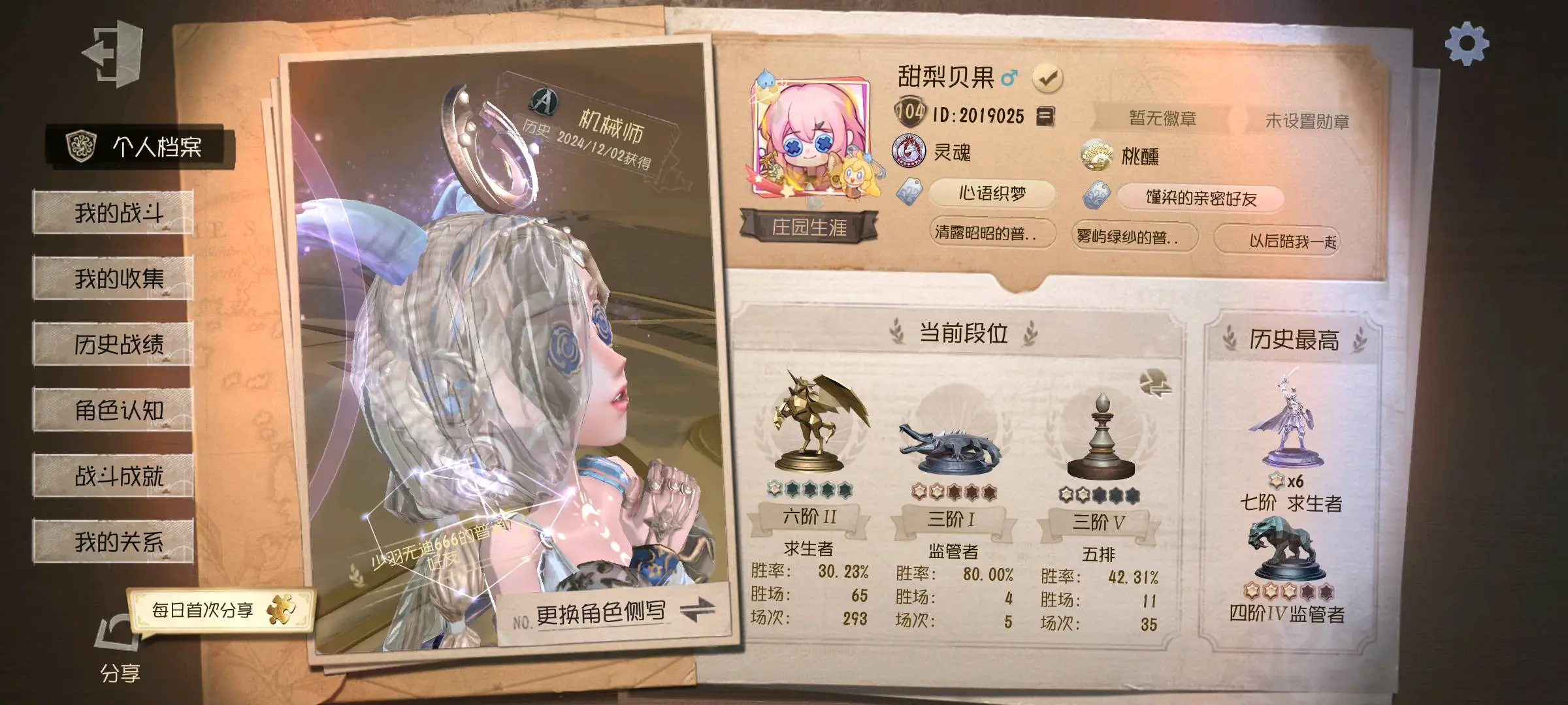 - 求生者段位: 五阶