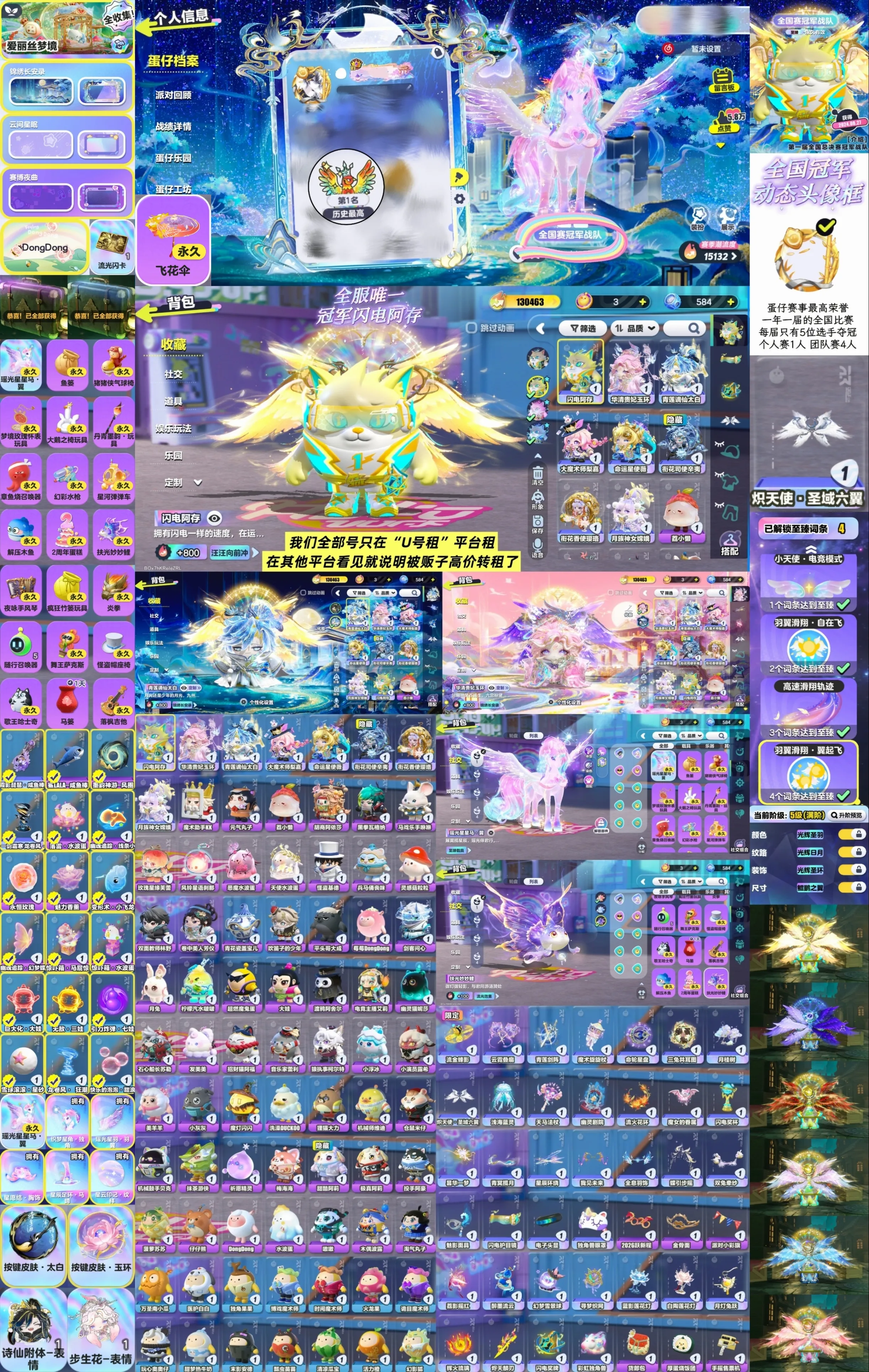 蛋仔派对,黎月园长,蔷薇红皇后,断罪骑士-极,圣翼天使-澄,暗匿小丑,蔷薇红皇后,音爆曜星,星际莱克,醒狮蛋宝,艾瑞和巴蒂,惑心小丑,欢宴园长,蔷薇白皇后,玉龙云岫,断罪骑士-岚,断罪骑士-烈,猎罪修罗-樱,猎罪修罗-溟,圣翼天使-恋,圣翼天使-堕,透明蓝帽,甜酷阿莉,织梦精灵,冰霜骑士,水母莱莱,小蓝帽,清姬樱子,深海灏克,胆小鬼,木偶波露,蟹船长,黑森麦克,月影摇摇兔、仙舞飘飘鹿、透明蓝帽、机甲、浪花戴露姗、小羊、兔兔车、榜一,白皇后、懒羊羊、鲨莉娃、砂糖熊王子,佣兵,杰克,赵云,园丁,橙留香,梅海海,铃兰三月兔,焰心龙女芙瑞,曙光龙女芙瑞,翠羽之屏,极真阿莉,无敌凤凰,超级凤凰,许愿币,彩虹币,龙车,兔车,鹿车,至臻滚动特效,大佬,单字,土豪,神豪,雪影极光羽,鱼龙舞,桃花春晓,马车,炽天使,圣域六翼,光辉,幽冥,永夜,翼起飞,百变羽翼,满氪,王者荣耀,和平精英,第五人格,元梦之星,火影忍者,手游Cf,穿越火线,无畏契约,三角洲行动,使命召唤手游,超自然行动组,逃出惊魂夜,群雄