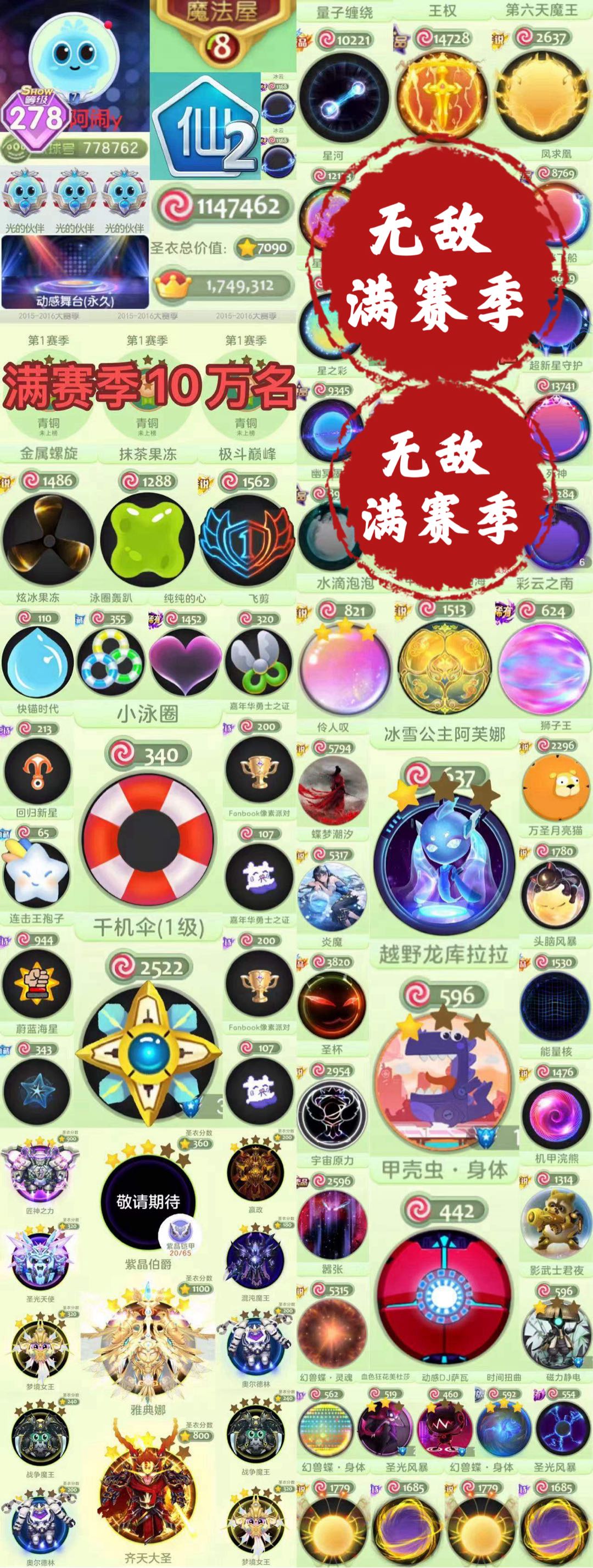【全平台】 满赛季10万排名 阿芙娜酷啦啦 甲壳虫水滴泡泡 泳圈千机伞 满赛季阿芙娜泳圈