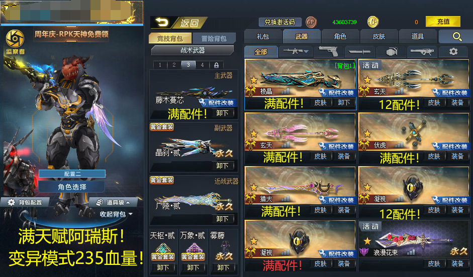 满天赋阿瑞斯!满天赋金甲!